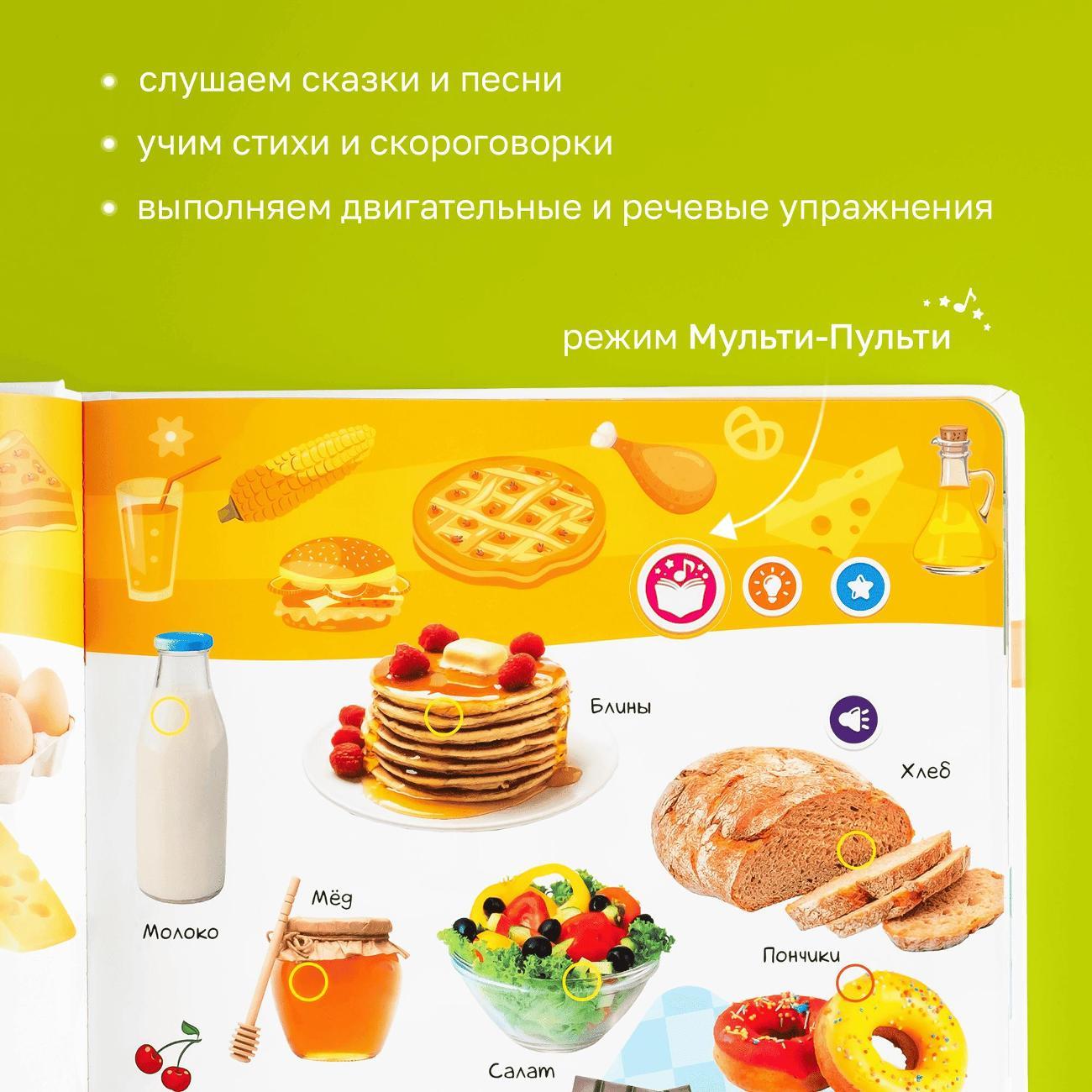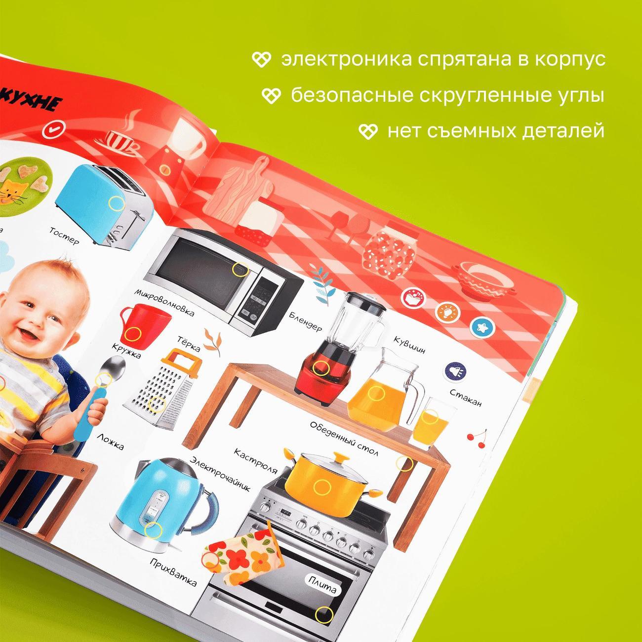 Спасибо большое продавцу, книга классная, яркая, картинки все нарисованы крупно. Вся книга изготовлена на качественной глянцевой бумаге, в хорошем твердом переплете. Книгу можно заряжать через USB шнур, что не мало важно, не надо бегать за батарейками. Есть кнопка включения и выключения книги, чтобы быстро не разряжалась.