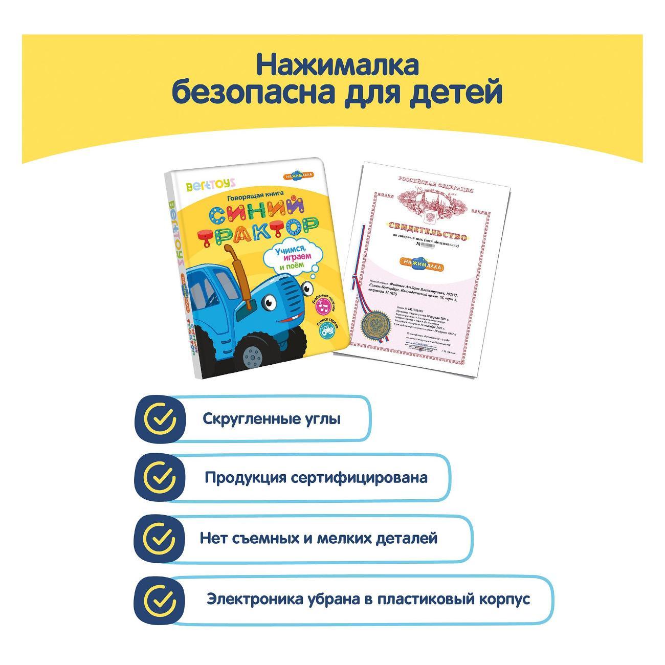 Это наша первая говорящая книжка от BertToys и уж точно не последняя)) Любителям «Синего трактора» обязательно к покупке 😁 ребенок (2,5 года) в восторге! Просыпается и сразу бежит за книжкой, повторяет любимые песни из мультика и выполняет задания! Спасибо за качественную продукцию ☺️ будем пополнять коллекцию!