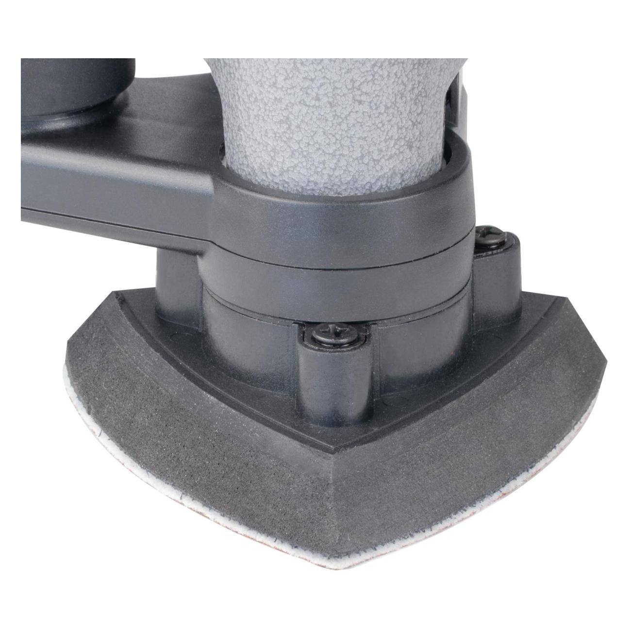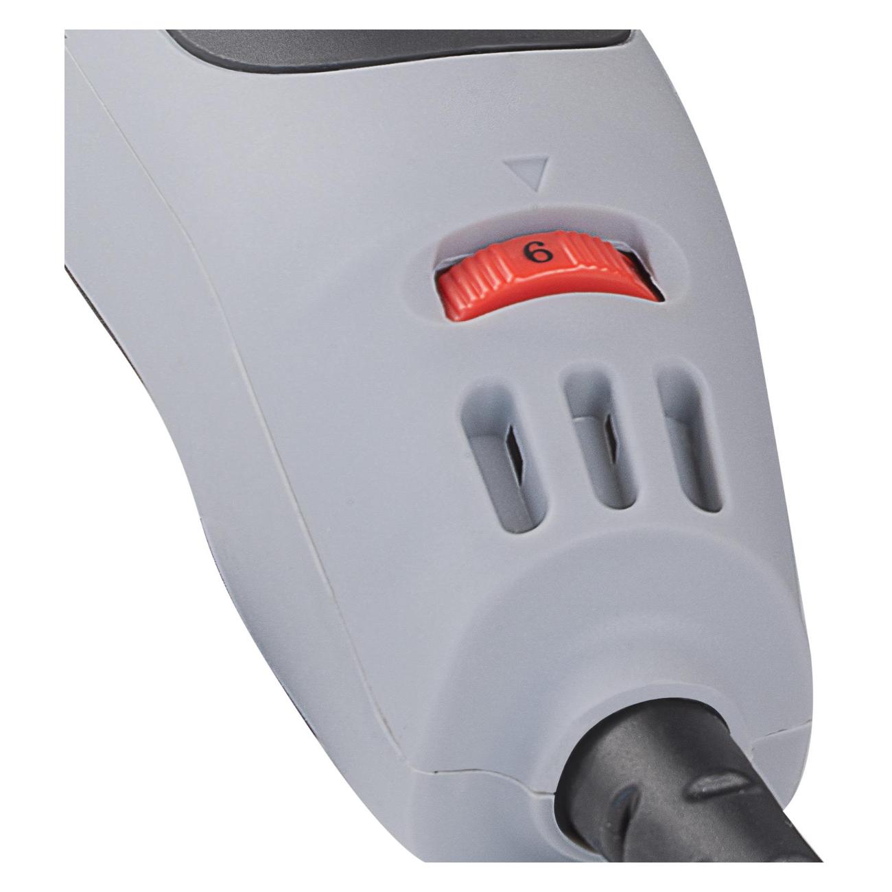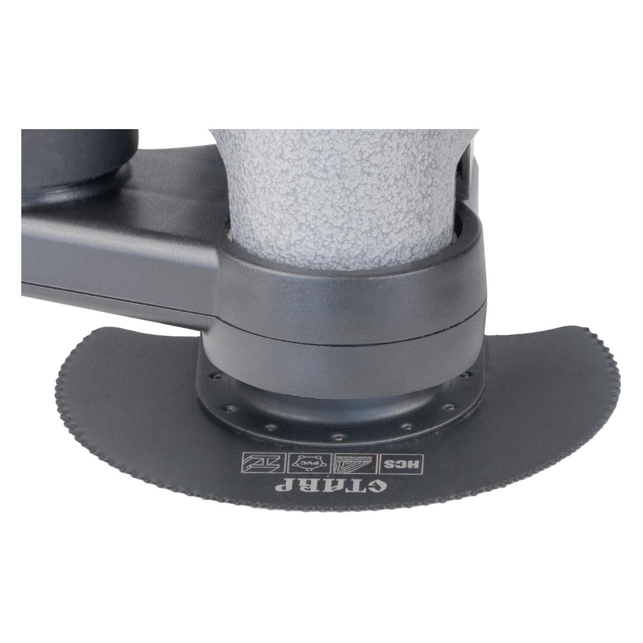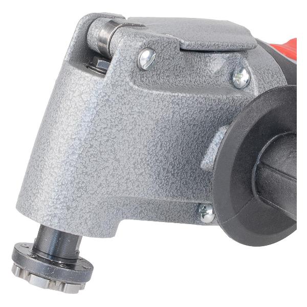 Угол колебаний составляет 3,5°, что делает работу с реноватором эффективной и комфортной. Устройство оснащено системой быстрой замены оснастки и фиксацией шпинделя. Также предусмотрен патрубок для подключения строительного пылесоса. Корпус реноватора выполнен из металла и пластика. Длина сетевого кабеля —