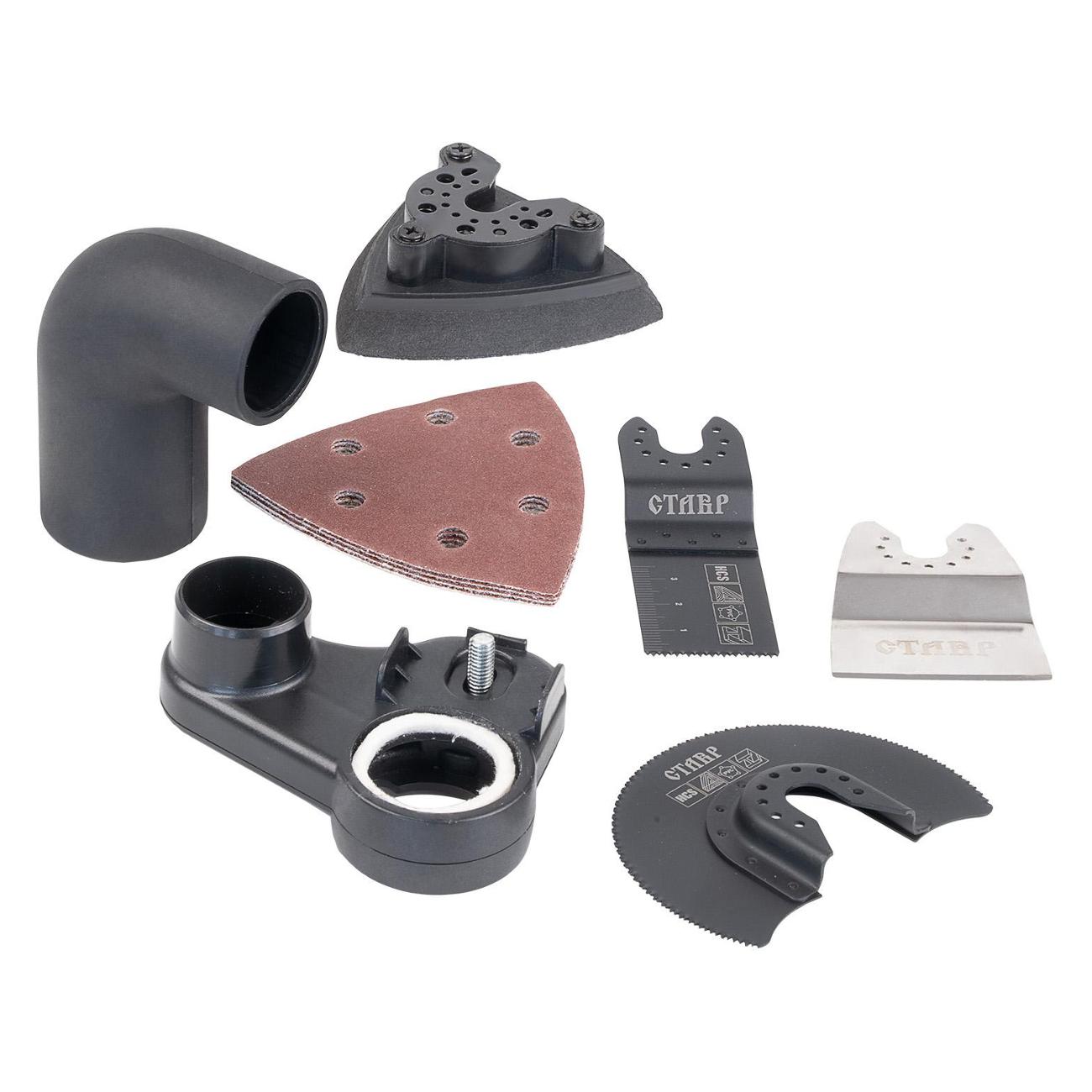 3 м. В комплекте поставляется удобный кейс для хранения и транспортировки инструмента. Также в набор входят различные аксессуары: скребок, пильное полотно, шлифовальная подошва, насадка для пылесбора и наждачная бумага.