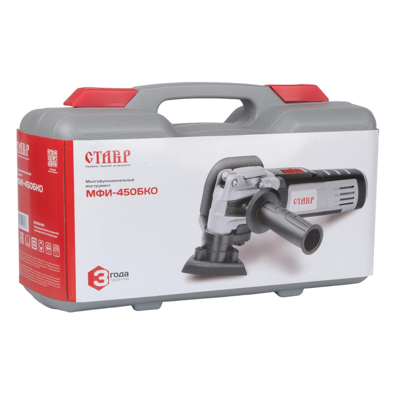 Реноватор «Ставр» МФИ-450БКО в серо-черном корпусе — многофункциональный инструмент, предназначенный для различных видов отделочных работ. Прибор обладает мощностью 450 Вт. Обороты двигателя можно варьировать в диапазоне от 15000 до 22000 в минуту. Регулировка электронная.