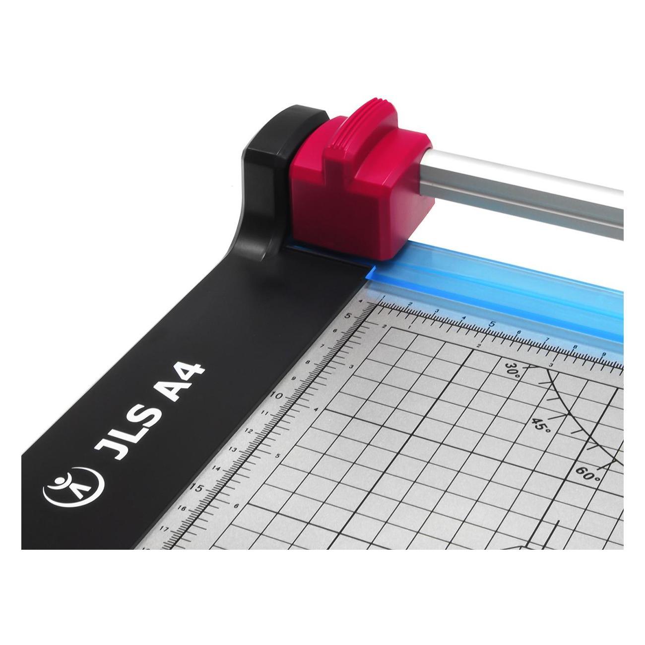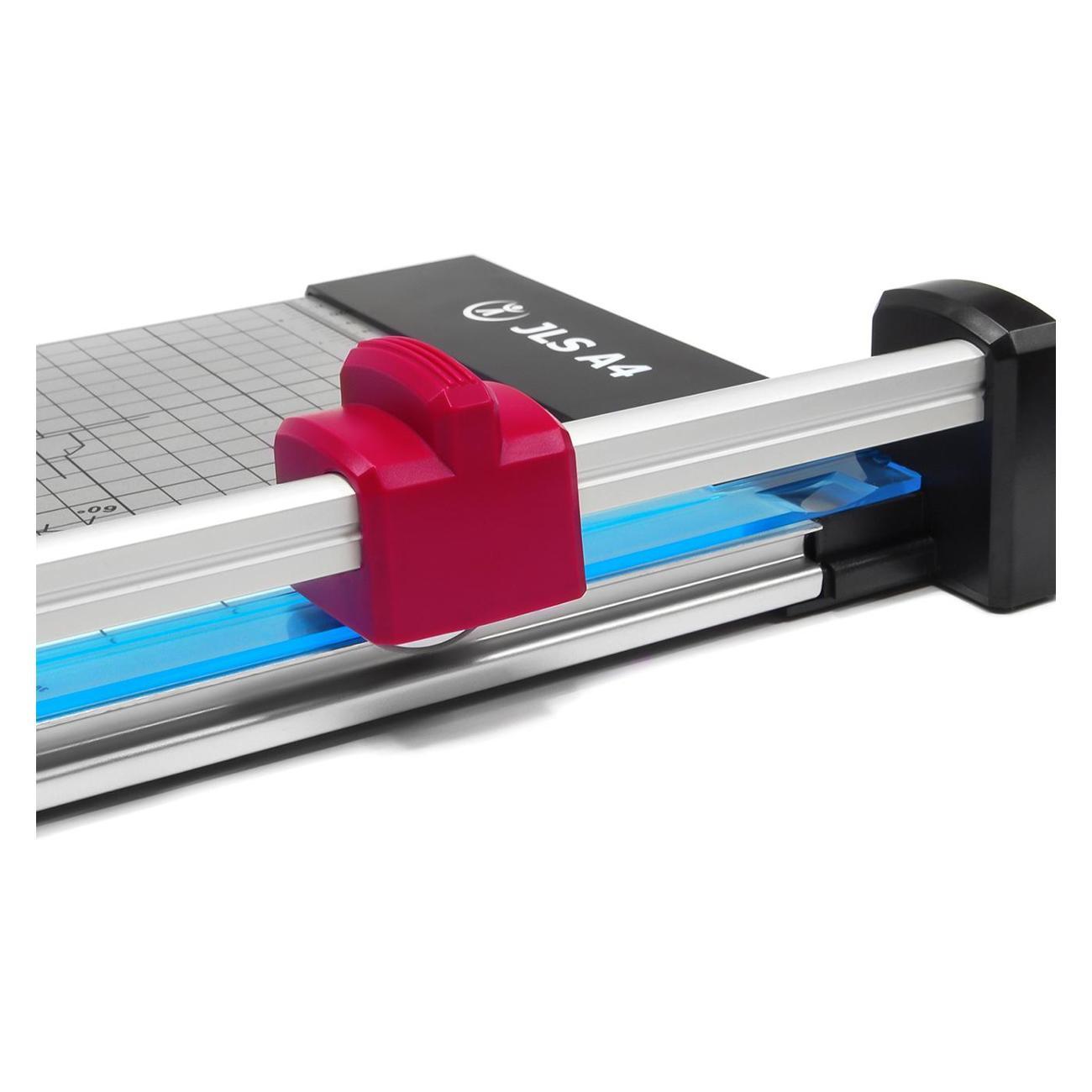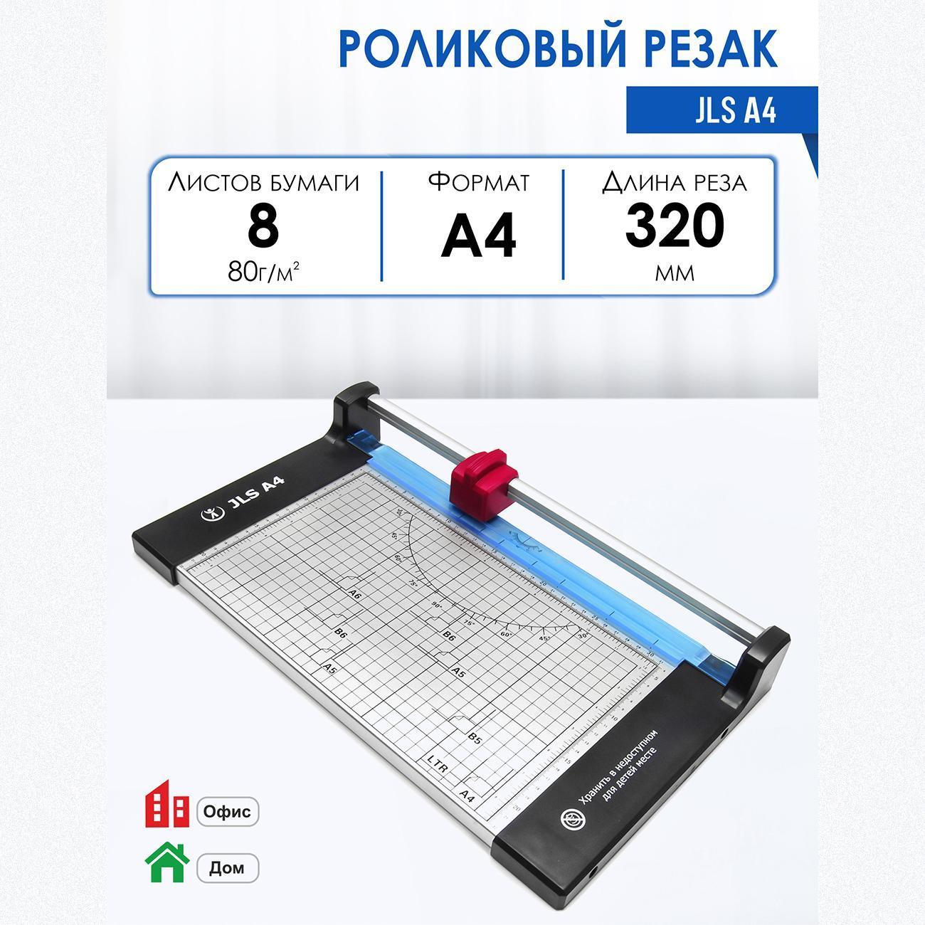 JLS A4 - компактный роликовый резак A4 формата. Недорогая модель с металлическим столом, удобной разметкой и автоматическим прижимом стопы бумаги во время реза для максимального удобства.- Длина реза: 320 мм,- Прямой рез: до 8 листов бумаги,- Рабочий стол: Металл,- Система прижима бумаги,- Разметка и транспортир на рабочем столе,- Разметка форматов на рабочем столе,- Линейки: Дюймовая и метрическая,- Резиновые ножки: Резак не скользит по столу,- Простая замена режущей головки.Для дома, офисов и организаций с небольшим объемом работ.