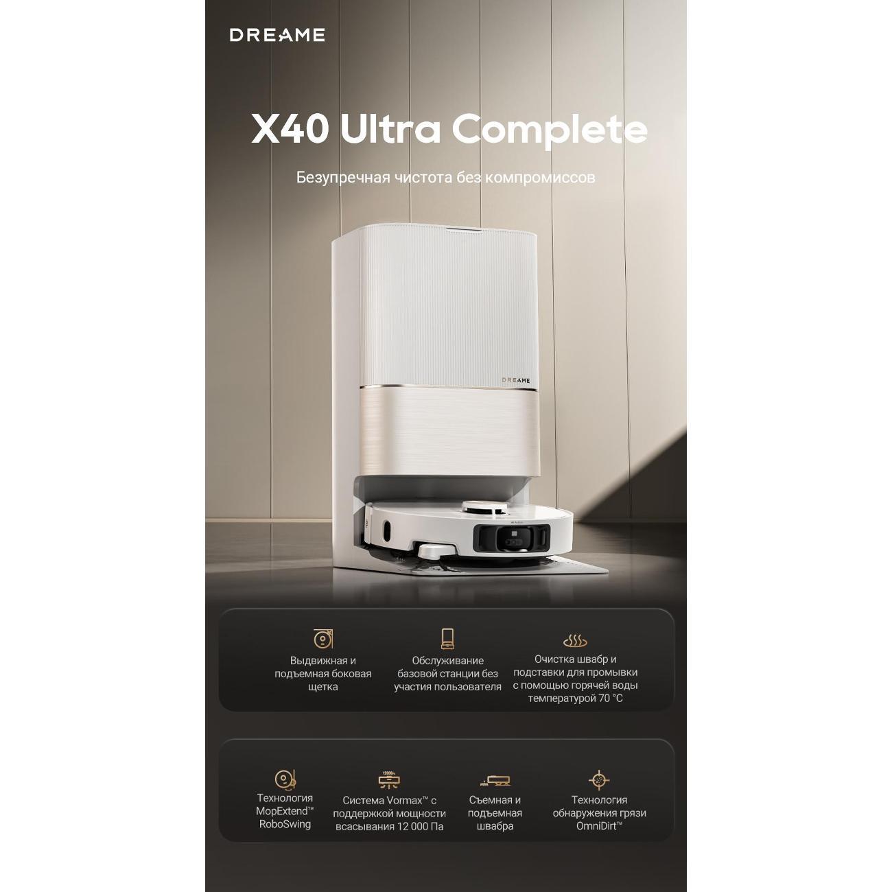 Вы можете купить Робот-пылесос для мытья полов Dreame X40 Ultra Complete в магазинах М.Видео по доступной цене. Робот-пылесос для мытья полов Dreame X40 Ultra Complete: подробное описание, фото и отзывы реальных покупателей, характеристики, возможность скачать инструкции и подобрать аксессуары.