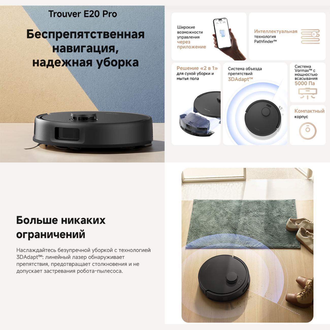 Вы можете купить Робот-пылесос Dreame Trouver E20 Pro, черный в магазинах М.Видео по доступной цене. Робот-пылесос Dreame Trouver E20 Pro, черный: подробное описание, фото и отзывы реальных покупателей, характеристики, возможность скачать инструкции и подобрать аксессуары.