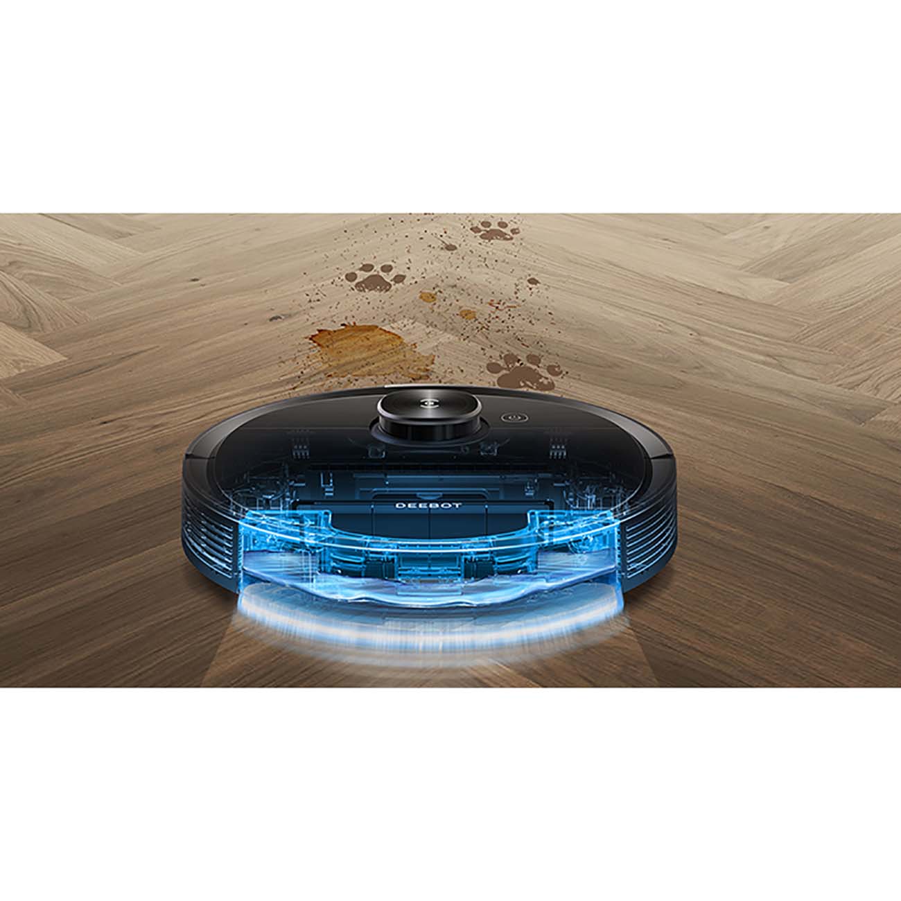 Уникальный механизм удержания давления способствует максимально глубокому очищению мягких напольных покрытий. А со специальным вибробаком, дополненным функцией трения, липкие капли на кафеле или следы от скотча отмоются без особых усилий. Важно, что во время проведения влажной уборки Ecovacs Deebot Ozmo T8 Aivi не закатится по ошибке на ковёр.