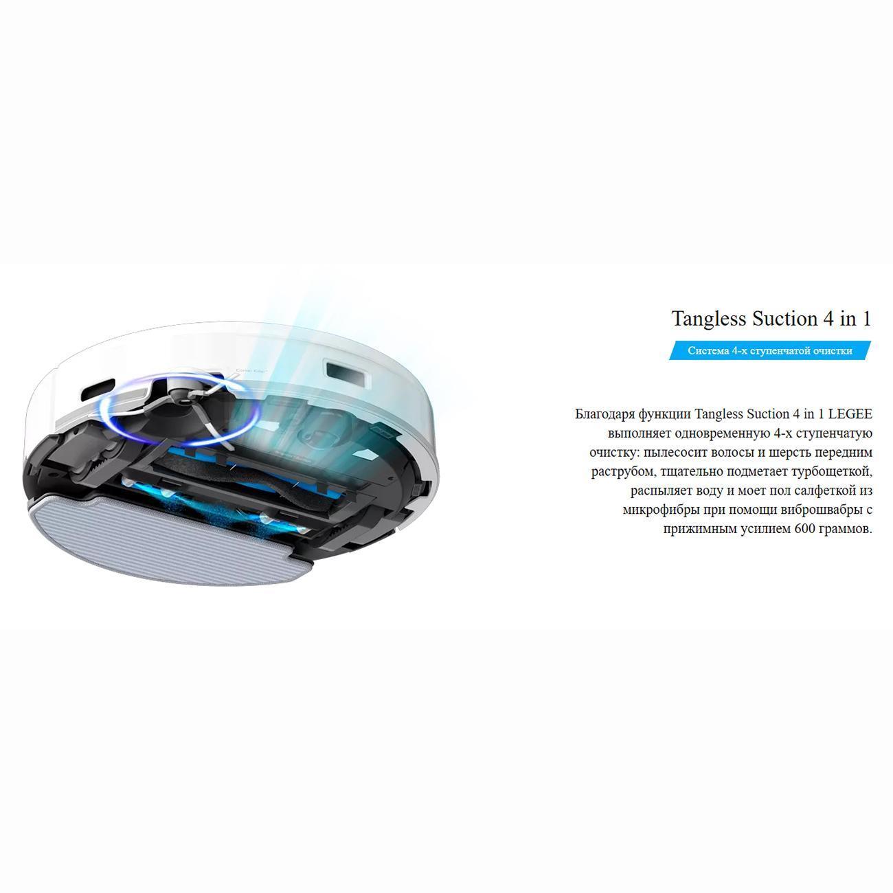 Предусмотрено шесть специализированных режимов работы. Программное обеспечение позволяет устанавливать виртуальные стены и записывать оригинальные голосовые сообщения. Литий-ионный аккумулятор на 5200 мА*ч обеспечивает автономность до 180 минут.