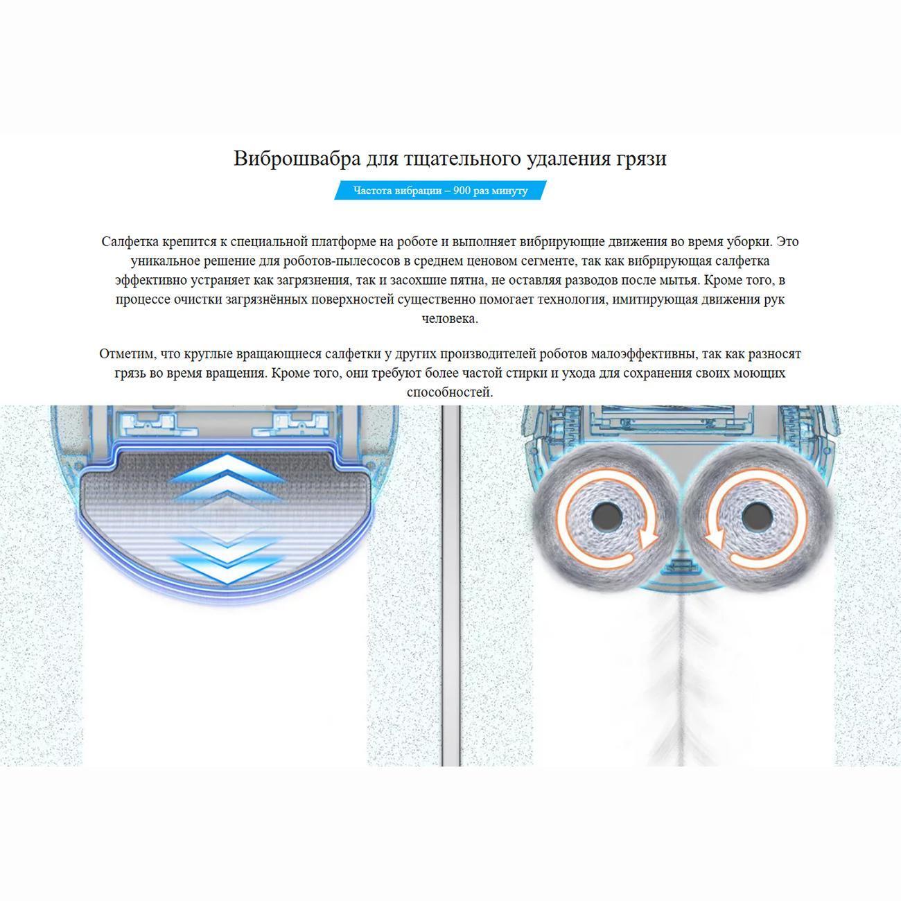 При обнаружении ковра моющая платформа убирается вверх. Датчики защищают ворс от намокания и помогают проезжать межкомнатные пороги высотой до 20 мм.
