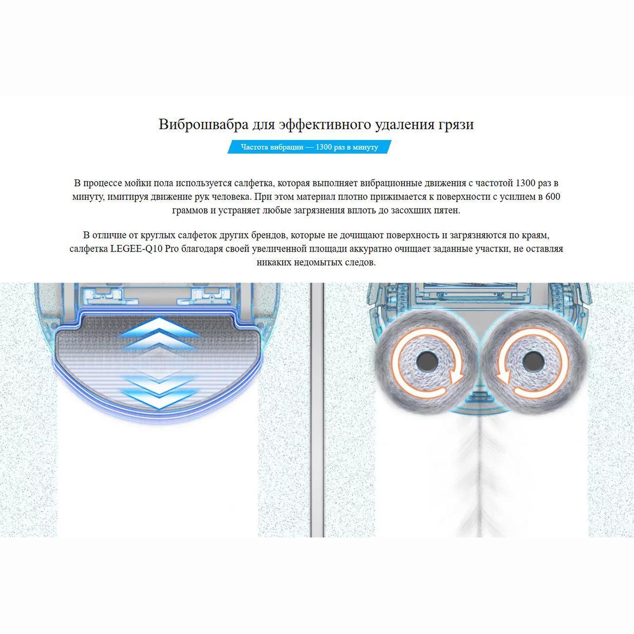 Моющая платформа совершает 1300 колебаний в минуту с прижимной силой 600 граммов, имитируя тщательное ручное мытье. При обнаружении ковра швабра автоматически поднимается на 10 мм, предотвращая намокание ворса и позволяя проводить сухую и влажную уборку за один цикл.