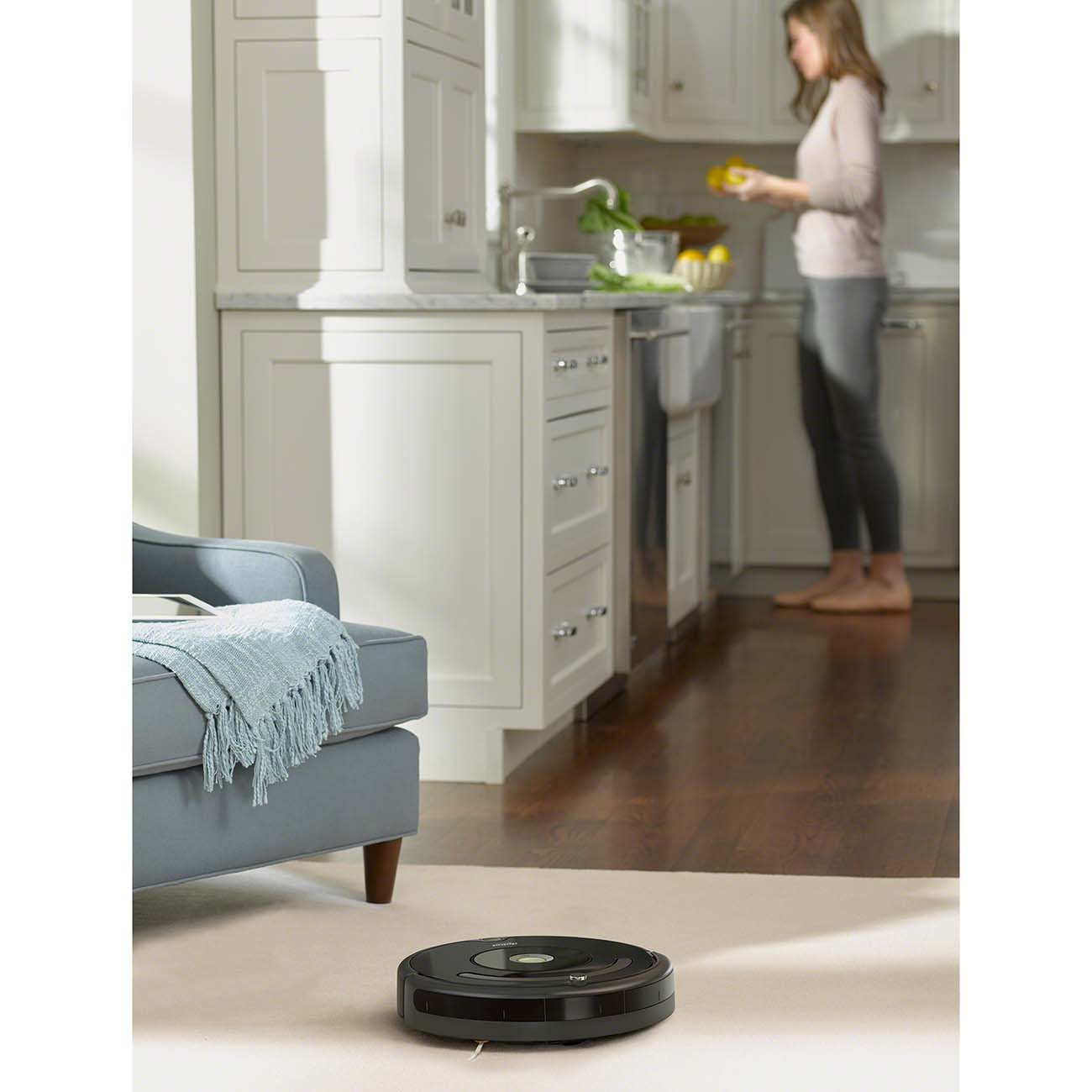 Уборщик оснащён системой искусственного интеллекта iAdapt, благодаря которой он не будет врезаться в двери и натыкаться на мебель. Кроме того, прибор не упадёт с лестницы и в случае чего высвободится из проводов или бахромы ковра.
