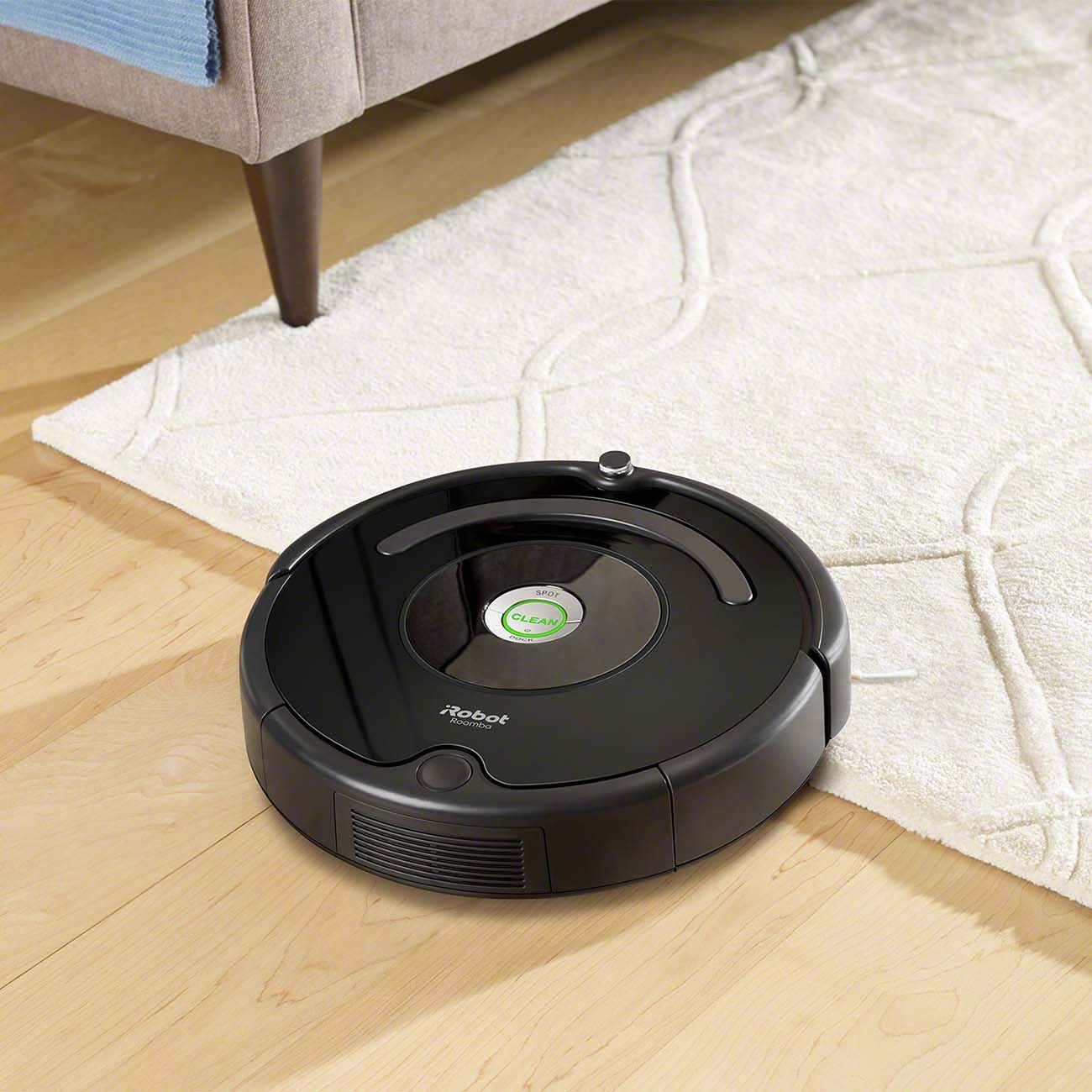 Нажмите на кнопку Clean, и устройство начнёт уборку. iRobot Roomba 612 способен распознать тип напольного покрытия и установить наиболее предпочтительный режим.
