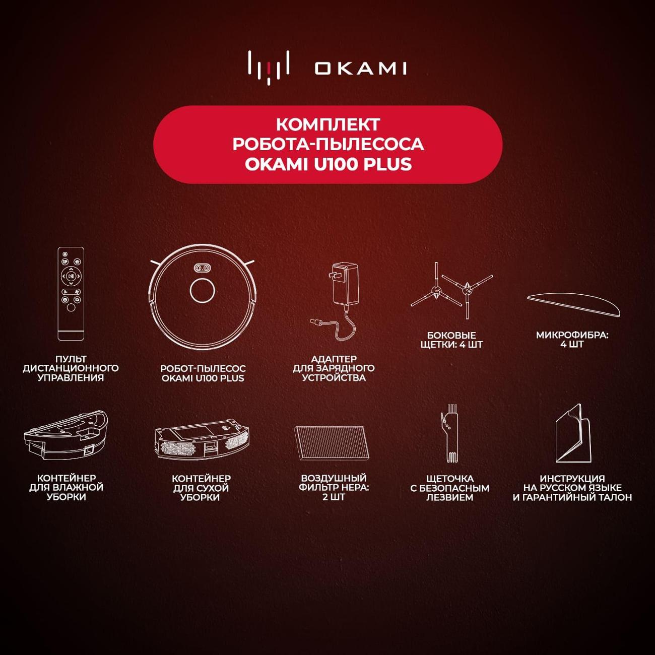 Вы можете купить Робот-пылесос Okami U100 Plus в магазинах М.Видео по доступной цене. Робот-пылесос Okami U100 Plus: подробное описание, фото и отзывы реальных покупателей, характеристики, возможность скачать инструкции и подобрать аксессуары.