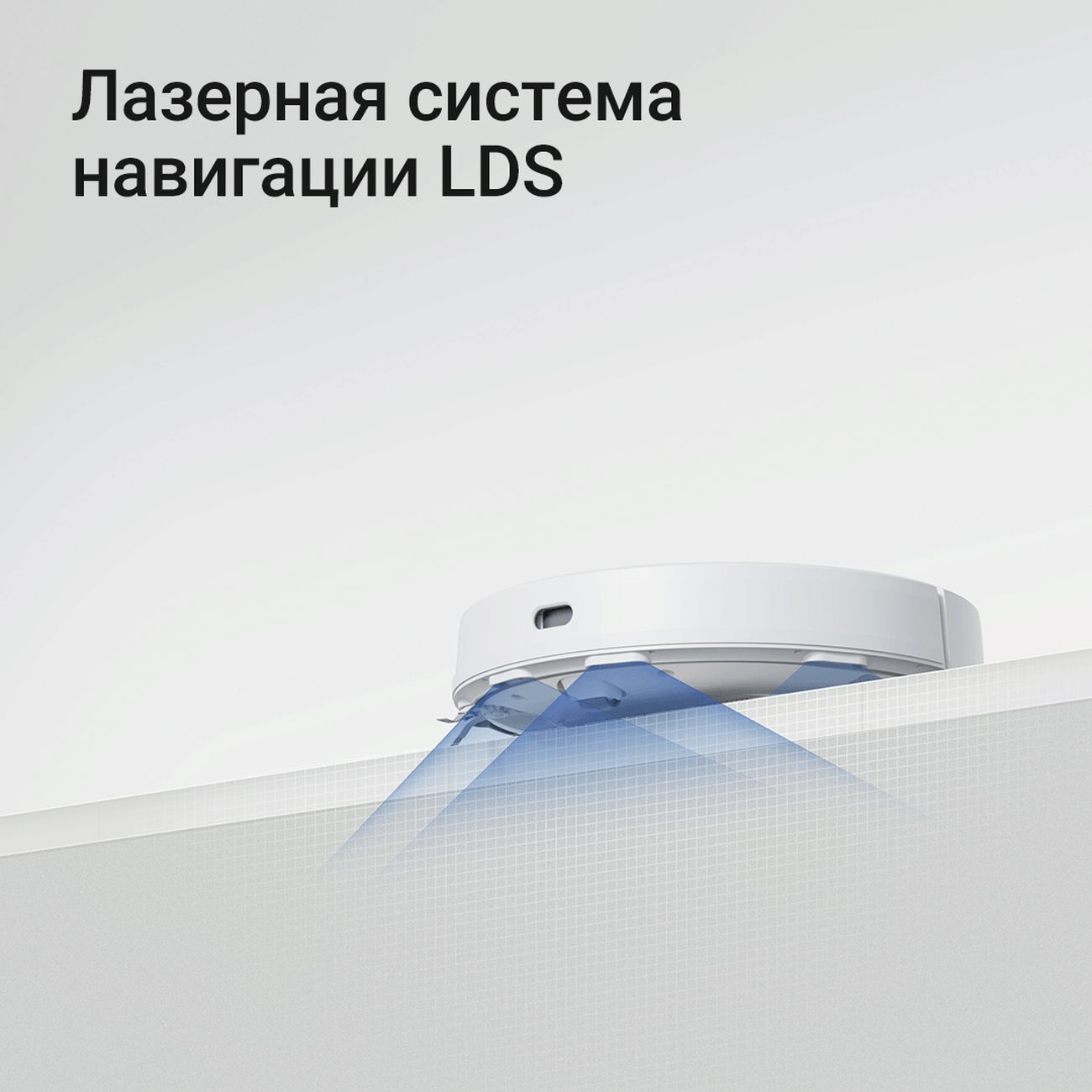 Робот-пылесос выполняет сухую и влажную уборку помещений. Для ориентации в пространстве предусмотрены лазерные датчики (Lidar). Прибор способен обнаруживать препятствия и составлять план помещения.