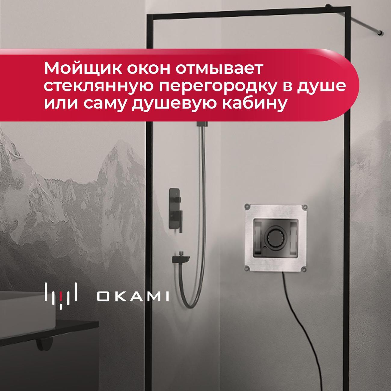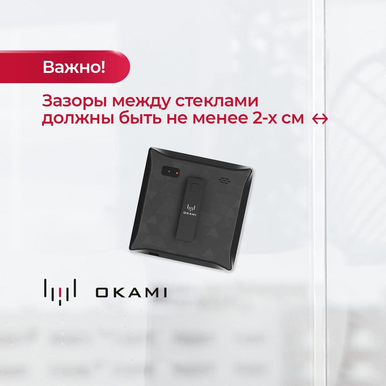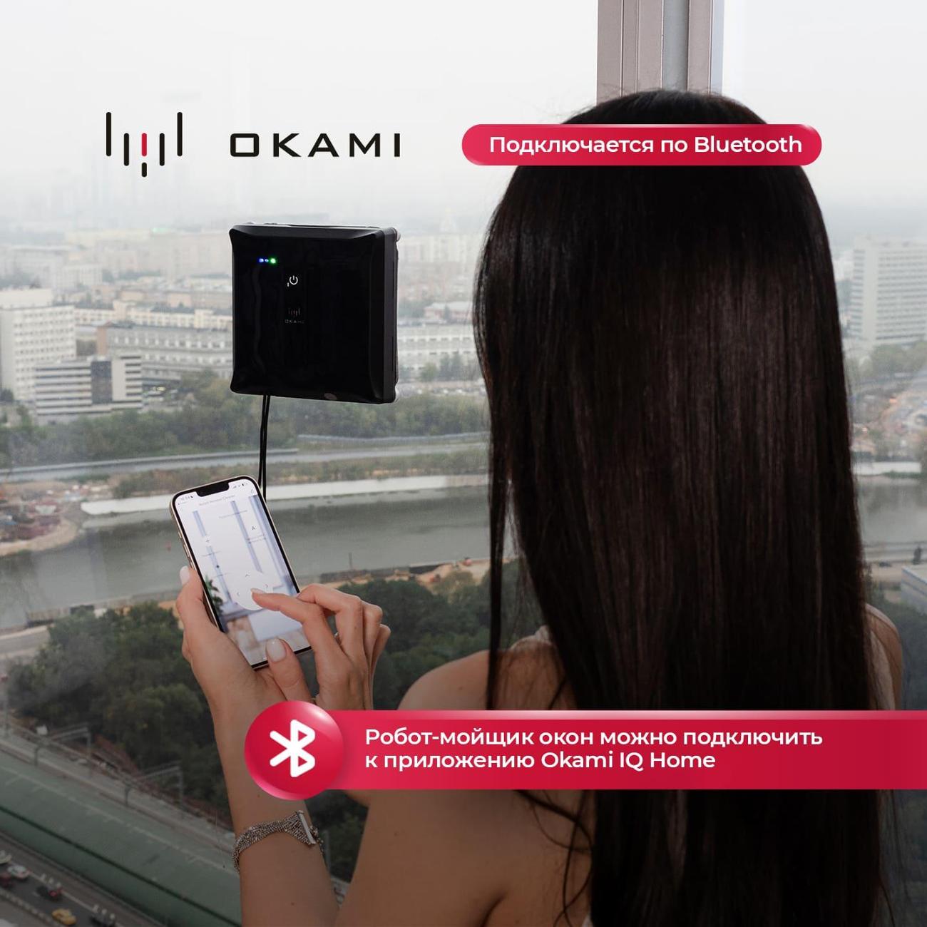 После фиксации робота на поверхности устройство самостоятельно ориентируется в пространстве с помощью технологии искусственного интеллекта. В процессе очистки робот распыляет моющее средство и собирает его с помощью салфетки, таким образом очищая поверхность от пыли и грязи. Один квадратный метр поверхности Okami Q75 очищает за 4 минуты. Квадратная форма позволяет мойщику эффективно очищать окна в углах и по краям.