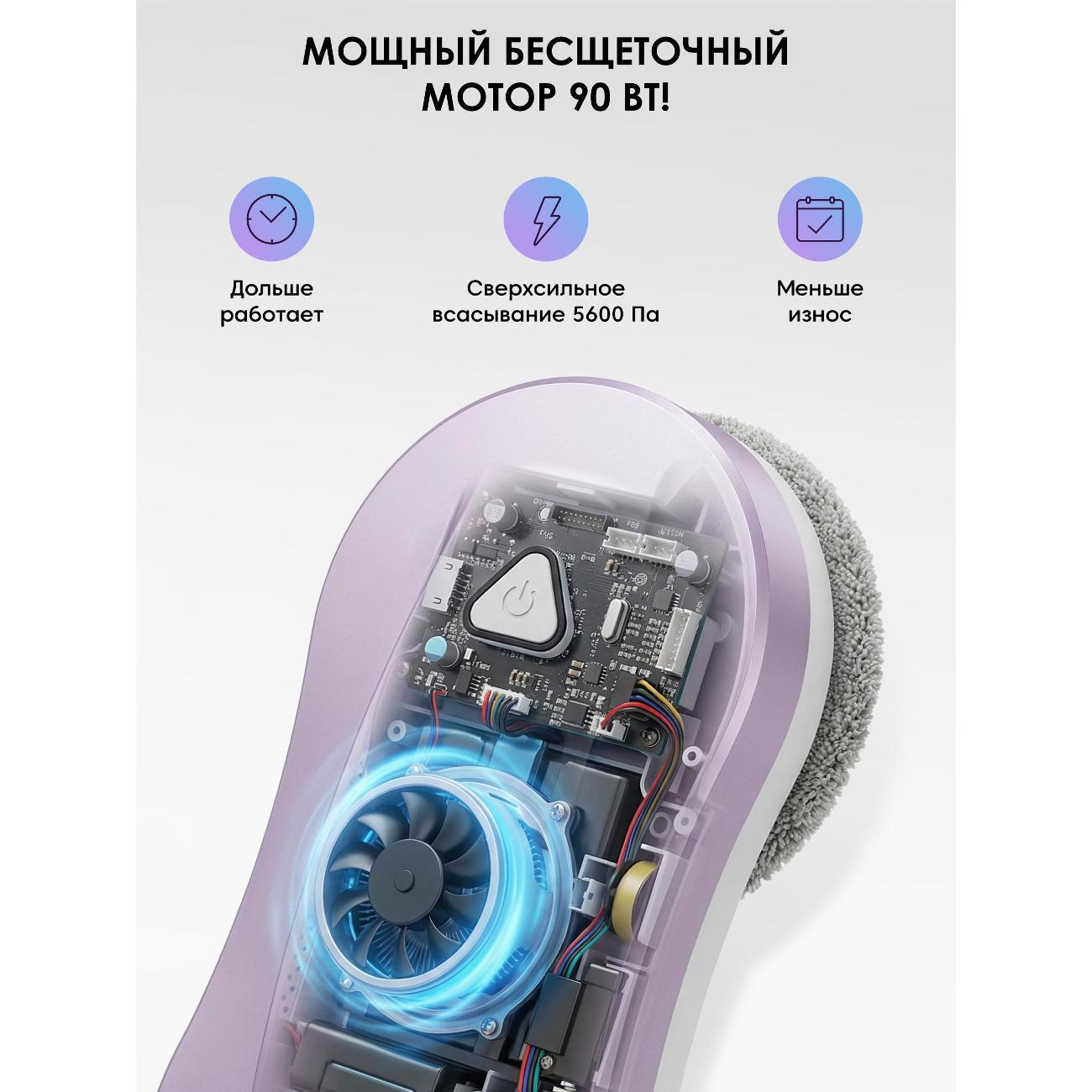Благодаря мощному бесщеточному мотору 90 Вт, силе всасывания 5600 Па и функции двойного распыления ваша мойка окон по сравнению с обычным мойщиком станет в 2 раза быстрее и эффективнее за счет более оптимальной траектории пути и своевременного увлажнения с двух сторон!