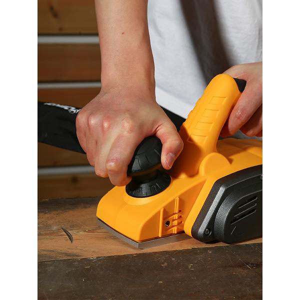 Электрический рубанок Deko DKEP1100W выполнен из ударопрочного пластика черно-желтого цвета и дополнен стальным ножом. При габаритах 16,5х18х30,5 см и длине подошвы 8,2 см вес прибора составил 3,13 кг. Модель питается от сети посредством 1,5-метрового кабеля и потребляет 1100 Вт мощности. Комплектация включает рубанок, шестигранный ключ, параллельный упор, гаечный ключ и мешок для сбора пыли. Устройство основано на двигателе, производительность которого составляет 16000 об/мин. Допускается подключение к пылесосу.