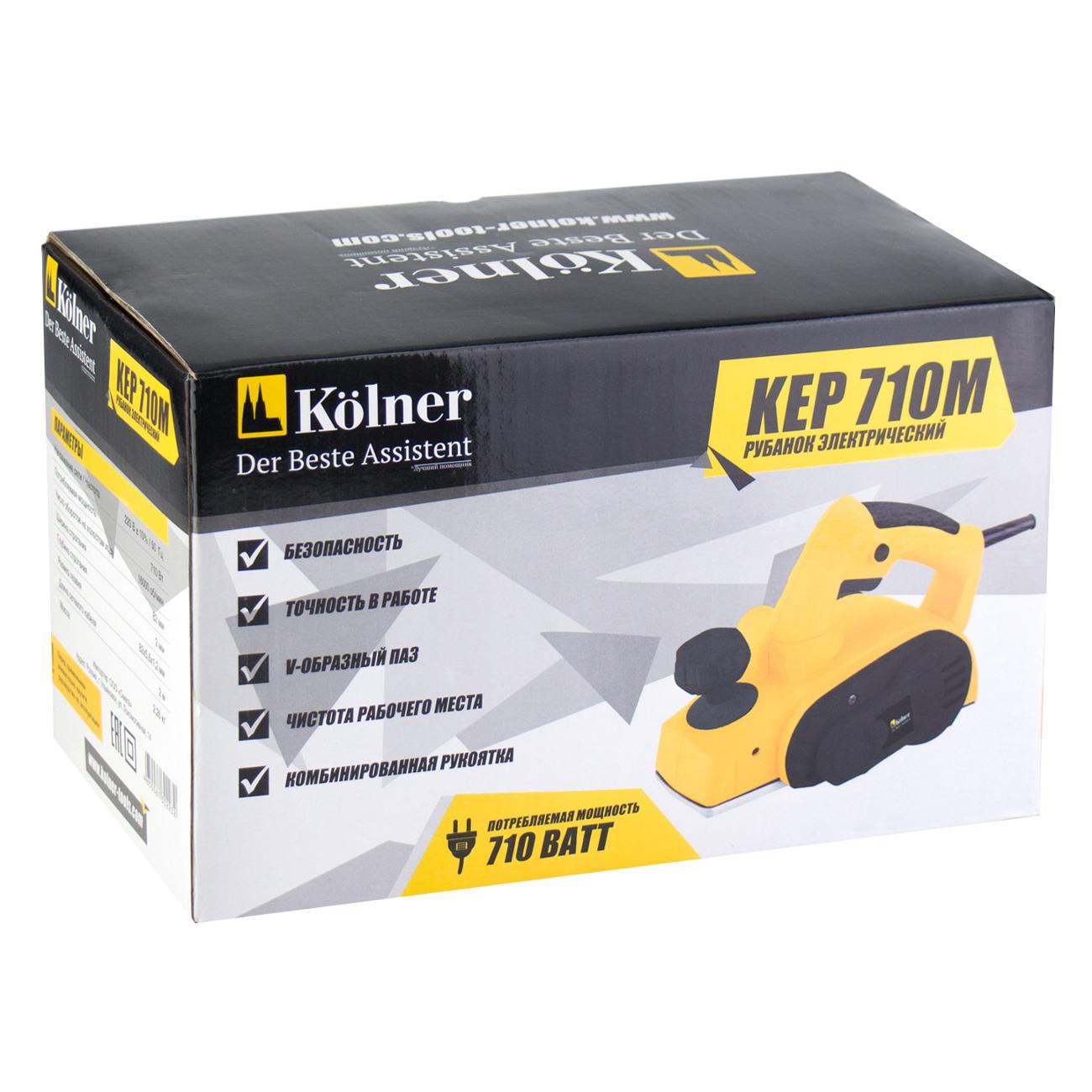 Рубанок электрический Kolner KEP 710M в черно-желтом корпусе оснащен двигателем мощностью 710 Вт используется для снятия кромки и строгания плоских поверхностей.