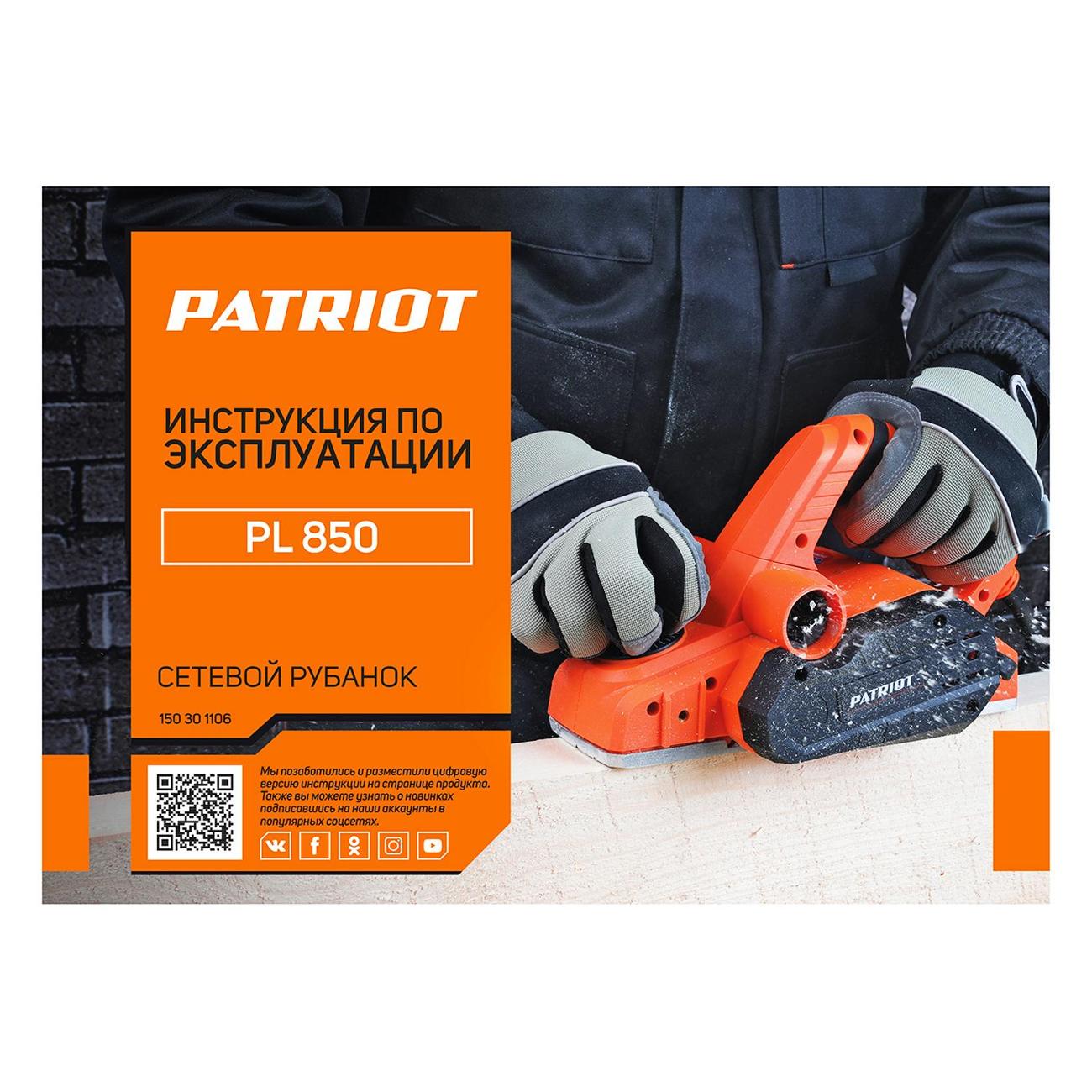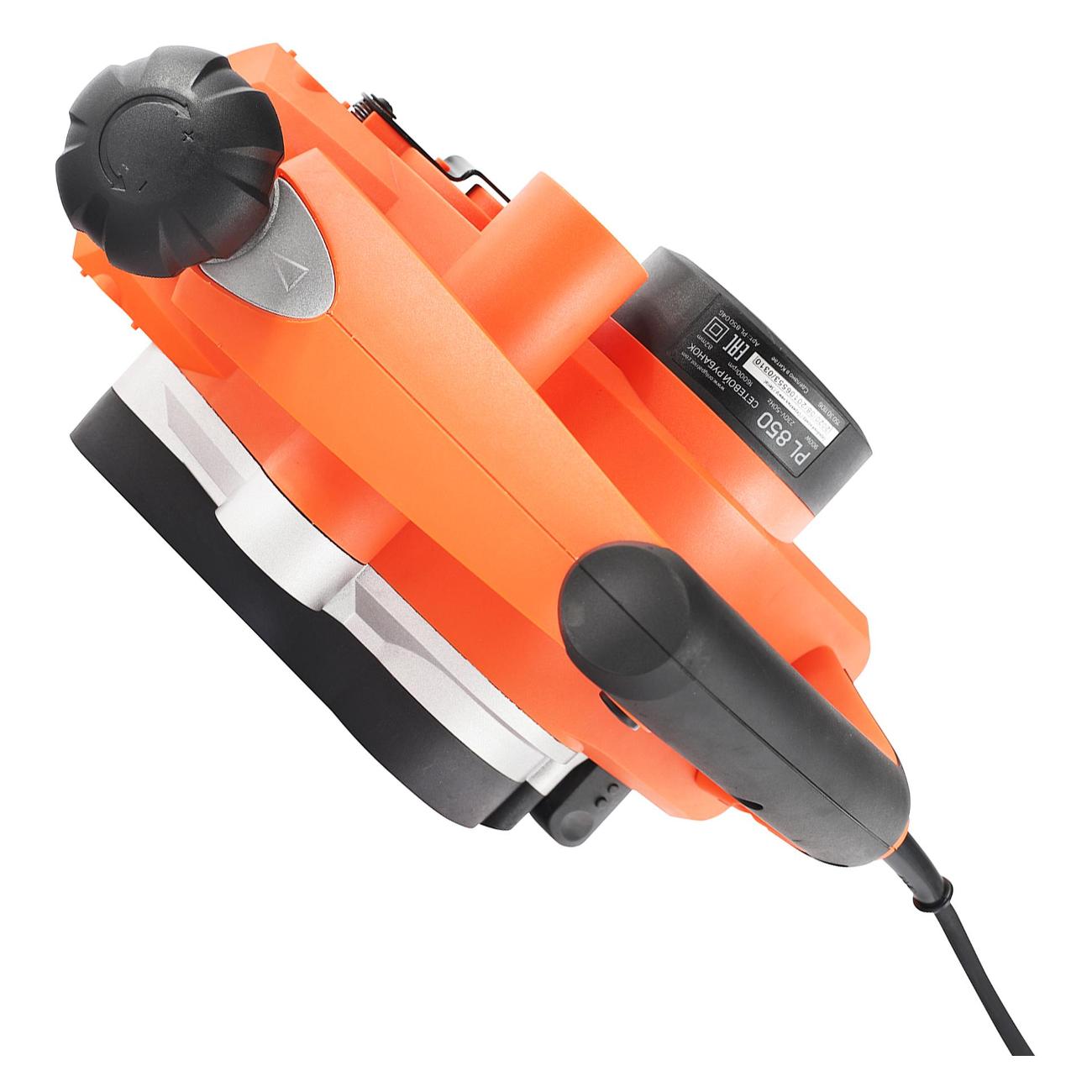 Электрический рубанок Patriot PL 850 черного цвета с оранжевыми элементами обладает массой 2,8 кг. Габариты прибора составляют 18,8х16,7х34 см. Уровень потребляемой мощности не превышает 900 Вт. Длина сетевого кабеля — 2 м. В комплекте поставляются шестигранный ключ, мешок для сбора стружки и параллельная направляющая. Максимальный уровень шума в режиме активной эксплуатации — 88 дБ. Число оборотов холостого хода — 16000 об/мин.