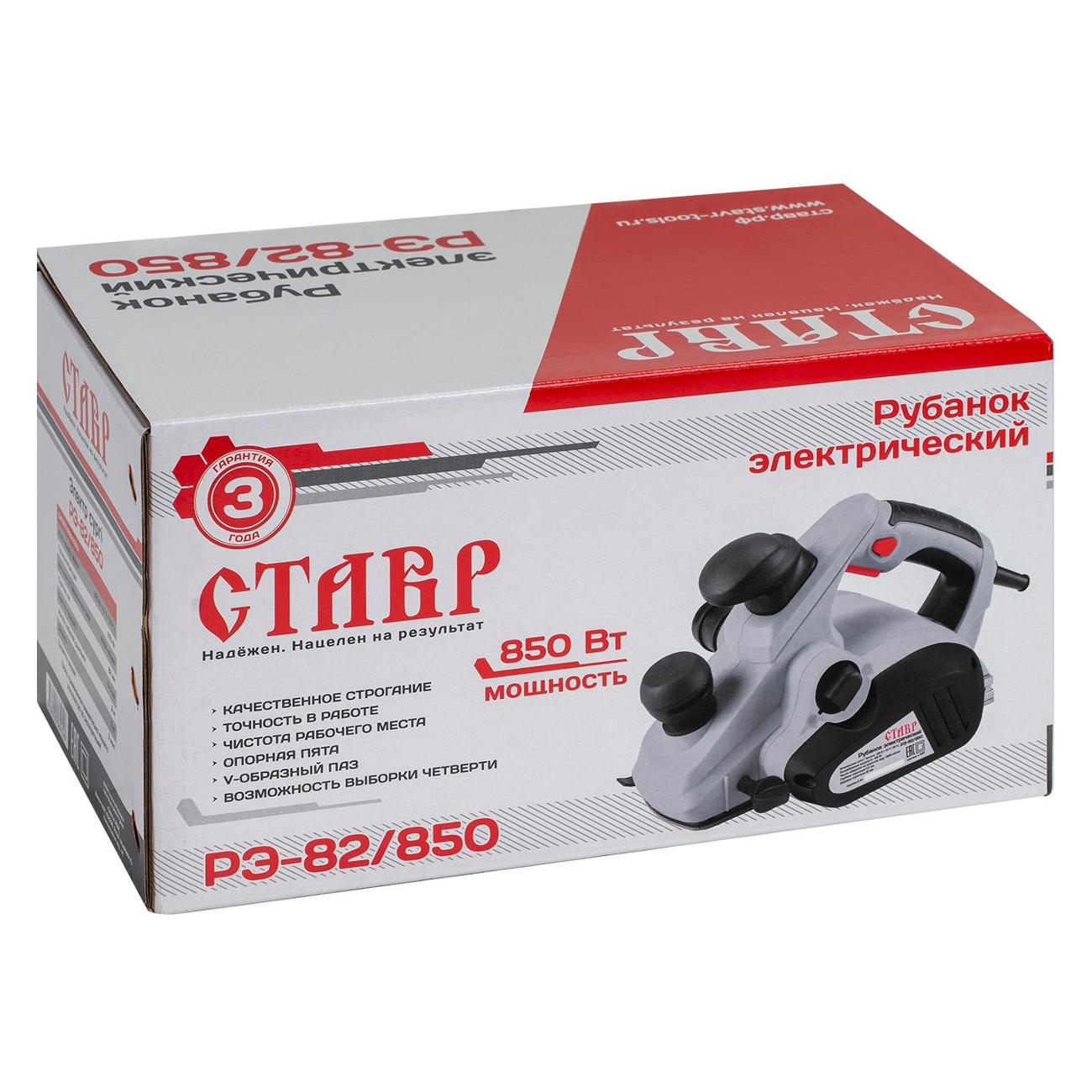 Электрический рубанок «Ставр» РЭ-82/850 функционирует от сети 220-240 В, потребляемая мощность — 850 Вт. Длина сетевого шнура — 200 см. Модель выполнена в серо-черном цвете из пластика. Корпус оснащен комбинированной прорезиненной рукояткой и опорной пятой.