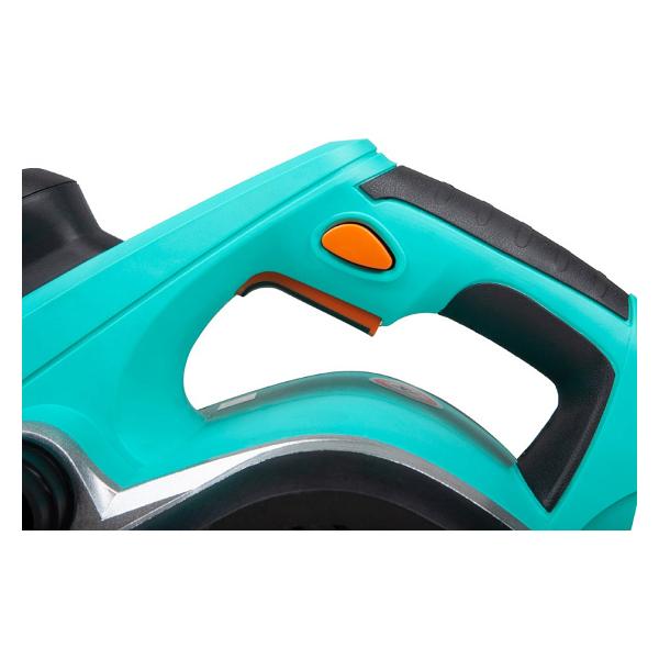 Ширина ножа составляет 100 мм. Кнопу включения прибора можно заблокировать для безопасности. Мощность модели составляет 1500 Вт. Корпус выполнен из качественного пластика, длина провода в 2 м позволит с удобством работать даже на удалении от розетки. В комплекте с рубанком поставляются: стойка, параллельная направляющая и упор, торцевой ключ, двусторонние ножи, патрубок, мешок для сбора пыли. Вес модели составляет 4,98 кг.