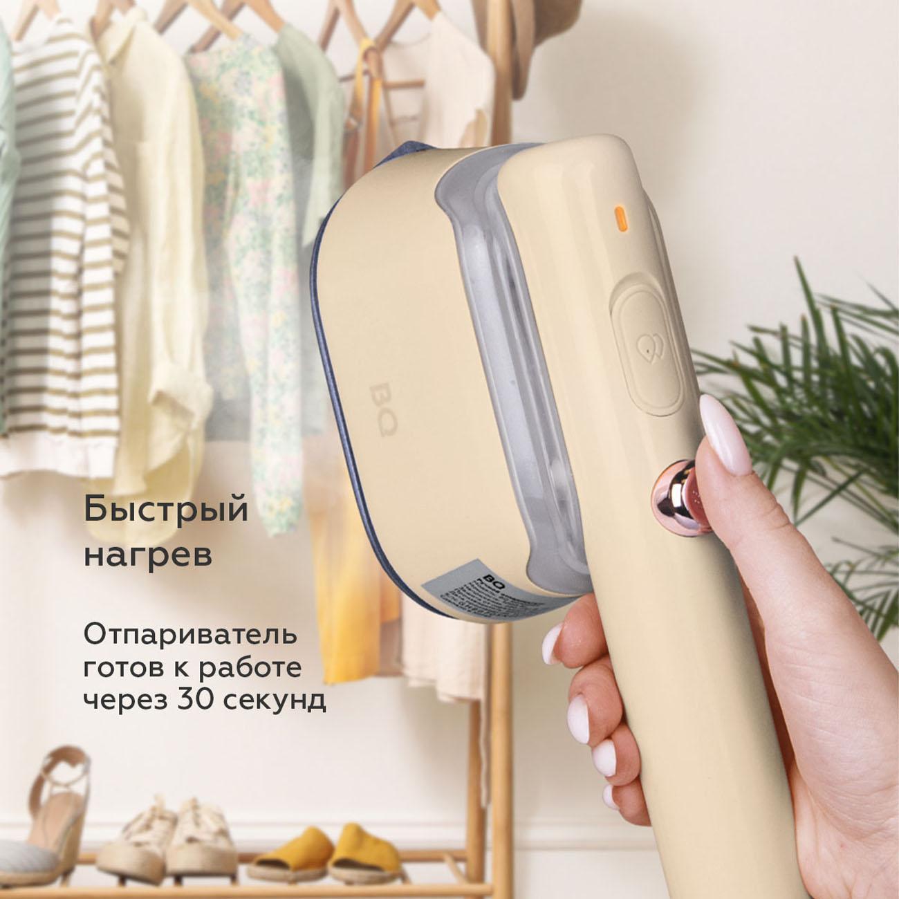 Корпус ручного отпаривателя BQ SG1008H сделан из АБС-пластика бежевого цвета. Устройство позволит быстрого разгладить складки на одежде и текстиле, освежить вещи. Конструкция рассчитана на работу в вертикальном и горизонтальном положении. Прибор оснащен механической кнопкой управления, индикаторы показывают включение и готовность к работе.