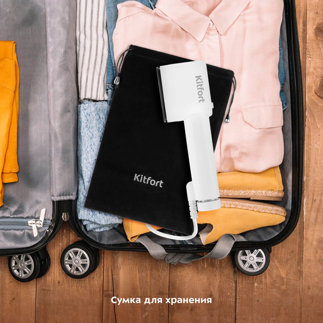 Ручной отпариватель Kitfort КТ-9128 подходит для горизонтального и вертикального отпаривания. Нагревается за 30 секунд, что экономит время. Керамическая подошва обеспечивает равномерный нагрев и предотвращает прилипание ткани. Длина сетевого шнура 17 м создает комфортные условия эксплуатации и позволяет дотянуться до труднодоступных мест. Съемный резервуар удобно заполнять водой. Он вмещает до 70 л, чего достаточно, чтобы отпарить 1-2 изделия. О включении и готовности к работе оповещает индикация. Благодаря противокапельной системе одежда не намокает в процессе глажки.