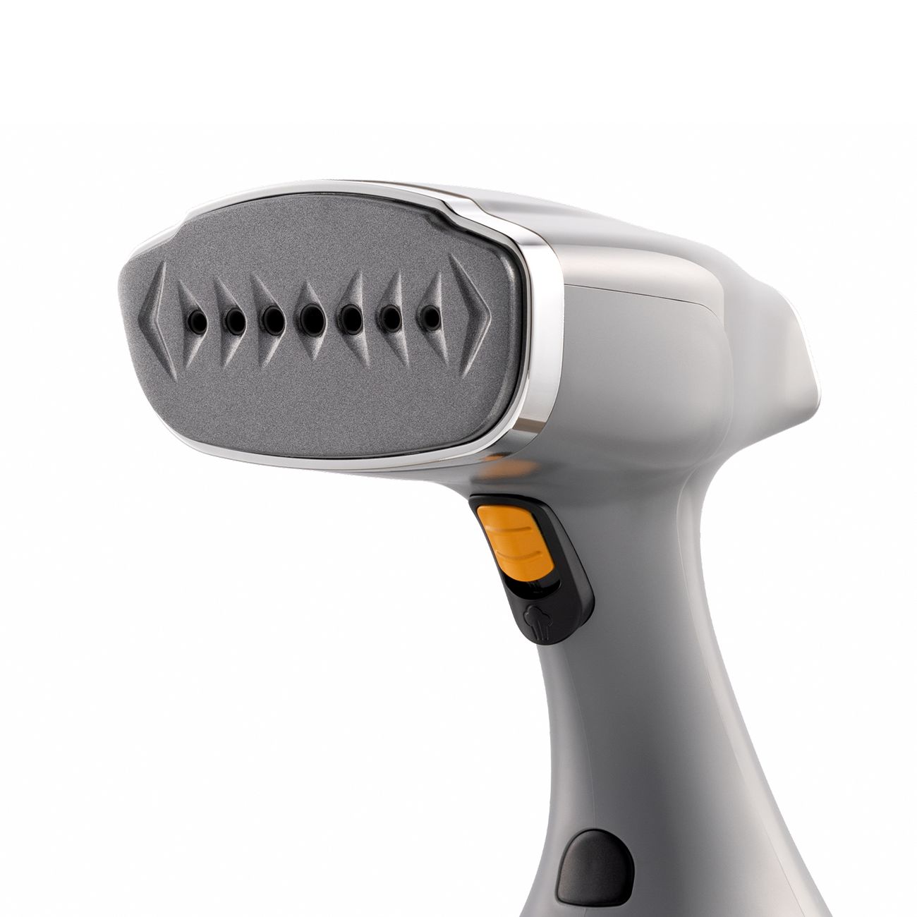 Пар подается с интенсивностью до 25 г/мин, давление — 1 Бар. Поддерживается режим сухого глажения — отпаривателем можно пользоваться словно обычным утюгом. Температура поверхности подошвы достигает 120°C. Уровней подачи пара два. Управление кнопочное, в торцевой части корпуса расположен символьный дисплей, отображающий активные параметры и готовность устройства к работе — на это требуется не более 20 секунд благодаря высокой мощности нагревательного элемента (1500 Вт). Длинный сетевой кабель (2,5 м) не сковывает движения и дает возможность действовать на значительном удалении от розетки.