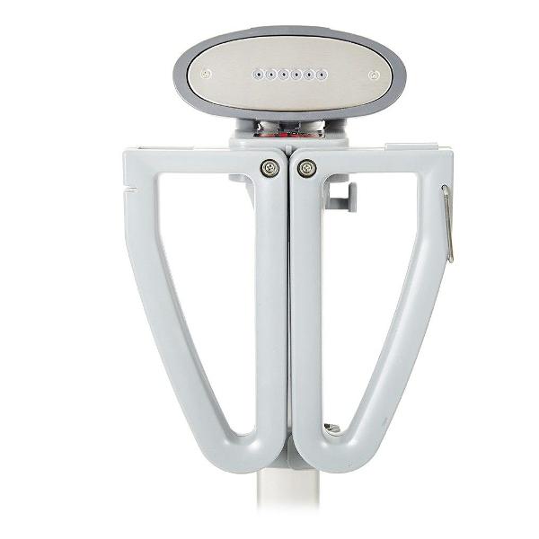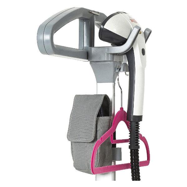 Управление механическое. На рукоятке парового утюжка находятся кнопка подачи пара и индикатор его готовности. Есть три режима работы, которые устанавливаются путем нажатия клавиши-педали в нижней части корпуса. Телескопическая стойка оснащена складной вешалкой для одежды. Отпариватель разглаживает вещи и удаляет неприятные запахи.