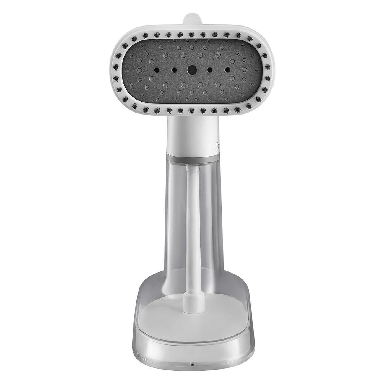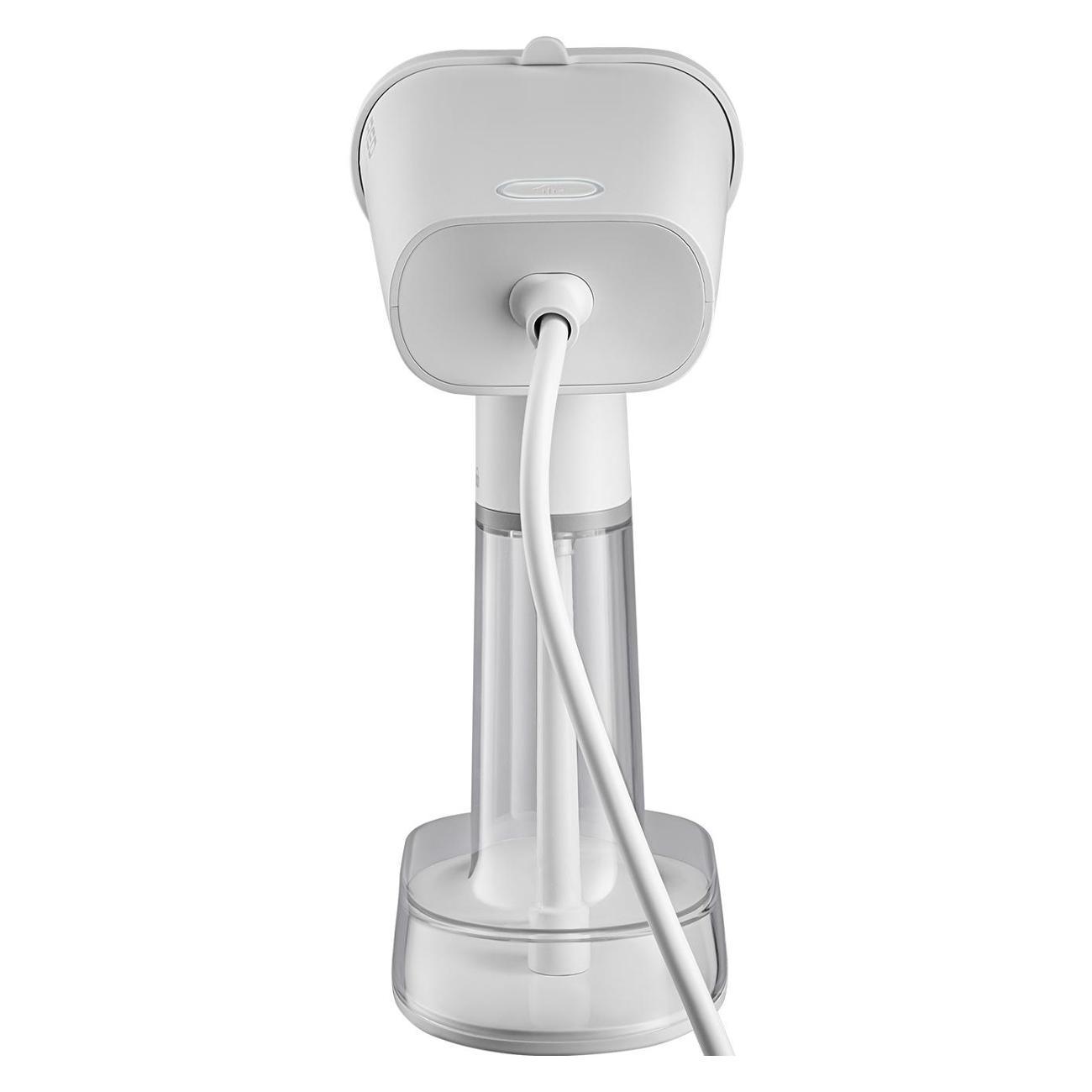 Источником питания служит стандартная электросеть, для подсоединения к которой задействуется кабель длиной 1,8 м. Устройство с габаритами 22,5х10,5х19 см и весом 0,85 кг удобно брать в поездки. Модель отличается съемным резервуаром для воды объемом 300 мл, заполнять который можно в любое время. В комплектацию входят мерный стакан, переходник для бутылки и насадка-щетка. Корпус изготовлен из прочного и износостойкого пластика.