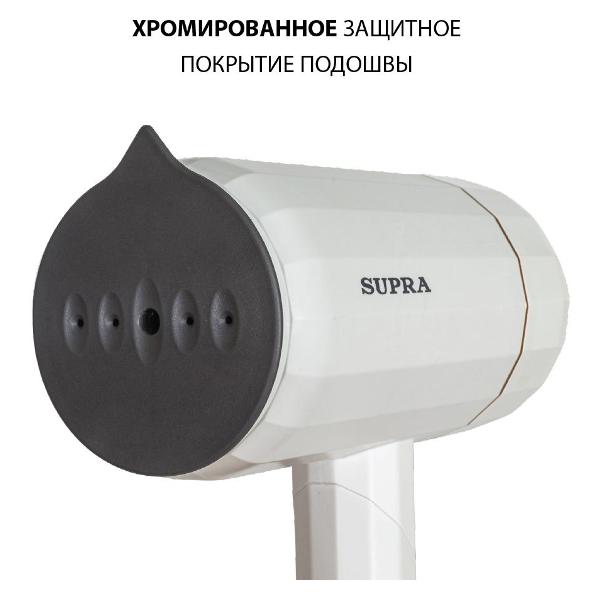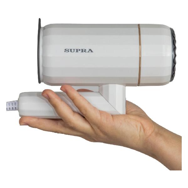 Ручной отпариватель Supra SBS-151 белого цвета оборудован высокопрочным пластиковым резервуаром вместимостью 0,14 л. Мерный стакан, входящий в комплектацию, обеспечивает удобство заливки воды. Устройство с максимальным давлением 1 бар отличается высокой производительностью, равной 16 г/мин.