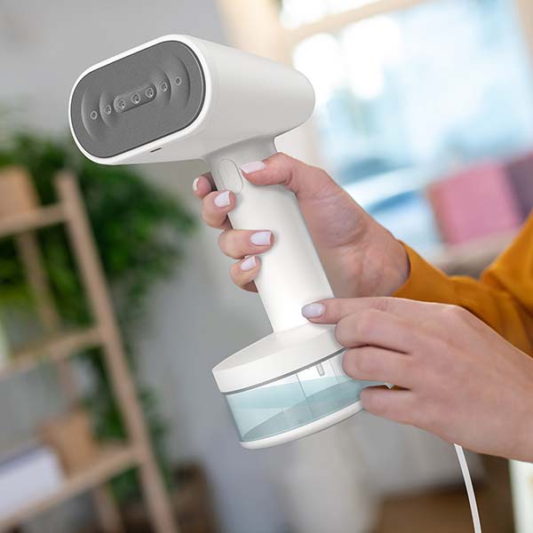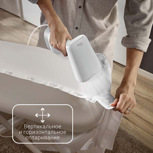 Раньше я как-то не особо задумывалась над тем, что ручной отпариватель может быть действительно удобен. Сейчас я им пользуюсь очень часто, особенно мне удобно обрабатывать простыни. Смысл состоит в том, что в специальный резервуар нужно налить воду. Потом эта вода нагревается и переходит в состояние пара. А пар как раз чистит и разглаживает ненужные складки на ткани. Вода нагревается не совсем сразу, а нужно подождать примерно 30 секунд, чтобы вода начала бурлить, а пар выходить из специальных отверстий. Удобно, что отпариватель можно держать и правой, и левой рукой. В комплекте сразу был чехол.