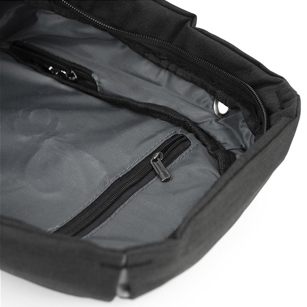 У городского рюкзака Kingth Goldn C130-01 широкая мягкая лямка — она не давит на плечо. Передняя часть изготовлена из водонепроницаемого материала. Внутри лямки спрятан карман на молнии — он расположен с внешней стороны. Карман в наличии и в передней части рюкзака. Внутри одно отделение. Присутствуют два кармана на молнии: один на спинке, второй на боковой стороне, и большой карман без молнии. Есть держатель для кабеля. Через него можно подключить смартфон к Power Bank или другому устройству. Пластиковый корпус защищает кабель от повреждения.