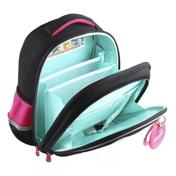 Ранец школьный для девочки спинка ортопедическая EVA, 2 отделения, 36*28*16 см, Grizzly, RAz-386-4. размер: 36*28*16 см; особенности: разделители; материал: полиэстер; комплектация: зеркало; количество отделений: 2 отделения; количество карманов: 2 внешних; пол: для девочек; каркас: жесткий; тип спинки: спинка ортопедическая EVA; светоотражающие элементы: да; застежка лямок на груди: да; Торговая марка:: Grizzly; Страна:: Китай. Формованный школьный ранец Grizzly с двумя отделениями на молнии.Основное отделение ранца разделено перегородкой-органайзером для тетрадей или книг.Дополнительное жесткое отделение с органайзером для мелочей.Ранец имеет два боковых кармана для бутылок с водой.У ранца ортопедическая спинка и жесткое дно на ножках.Светоотражающие элементы обеспечивают дополнительную безопасность в темное время суток.