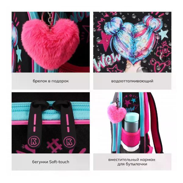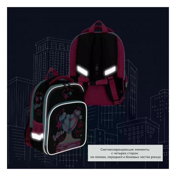 Ранец с эргономичной спинкой, 2 отделения, 37*27*15 см, COMFORT, Wow Girl, Brigfut, 213979. размер 37*27*15 см; особенности разделители; материал полиэстер. Лёгкий, компактный и вместительный школьный ранец серии Comfort, размером 27*37*15 см. Ранец рассчитан на рост от 128 до 160 см. Выполнен из высококачественного, износостойкого и влагоотталкивающего материала. Модель имеет эргономичную вентилируемую спинку с потайным карманом на молнии, регулируемые лямки, нагрудную застёжку. Два вместительных отделения, большой внешний карман, который включает в себя органайзер для письменных принадлежностей, два боковых кармана на резинке. Внутри предусмотрены разделители для учебных пособий, карман для пропуска. Световозвращающие вставки на лямках, передней и боковых частях ранца обеспечивают безопасность ребёнка в тёмное время суток. Отделка: термопечать, вышивка. Вес ранца 980 г.