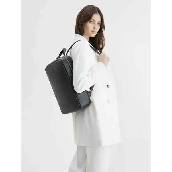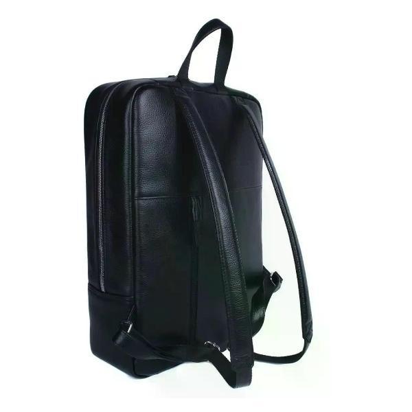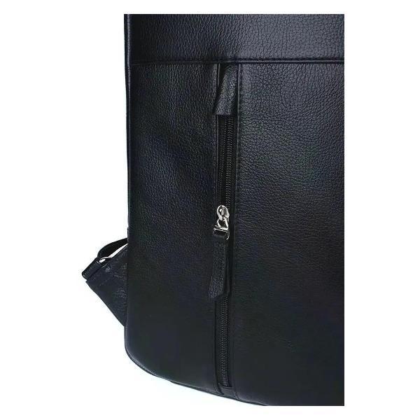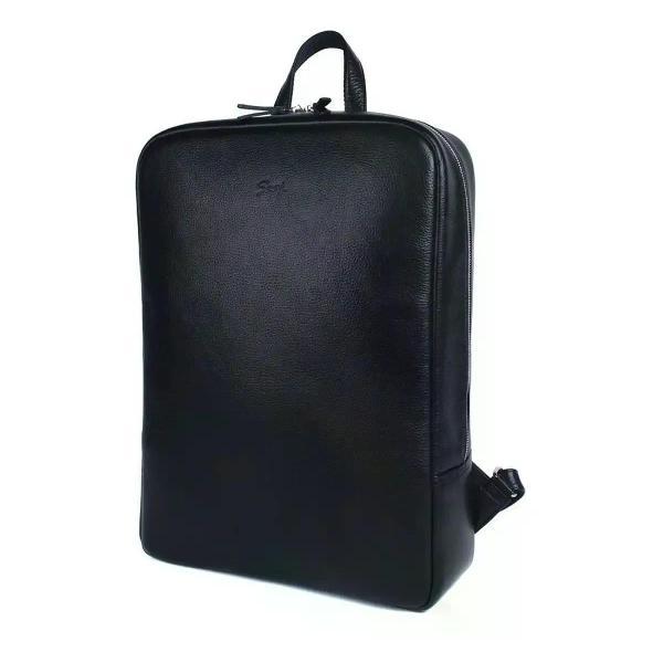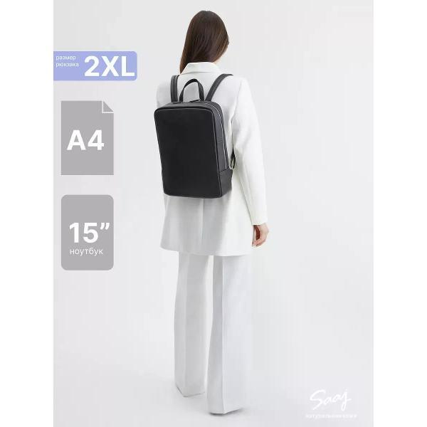 Городской рюкзак бренда SAAJ для ноутбука 15 дюймов из натуральной кожи черного цвета. Рюкзак закрывается на молнию. На задней стенке карман на молнии. Внутри отделение для ноутбука 15 дюймов и карман на молнии для документов. В основное отделение входит формат А4. Максимальный вес содержимого рассчитан до 3,5 кг. Плечевые регулируемые ремни рюкзака усилены. Максимальная длина плечевых ремней 82 см, минимальная длина 66 см. Также имеется короткая ручка. Изделие упаковано в тканевый мешок.
