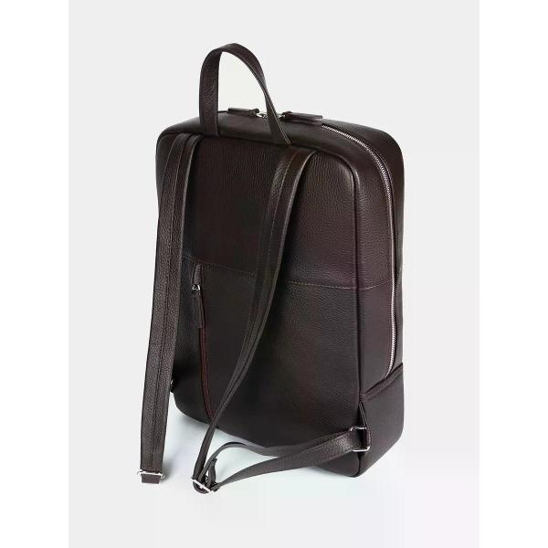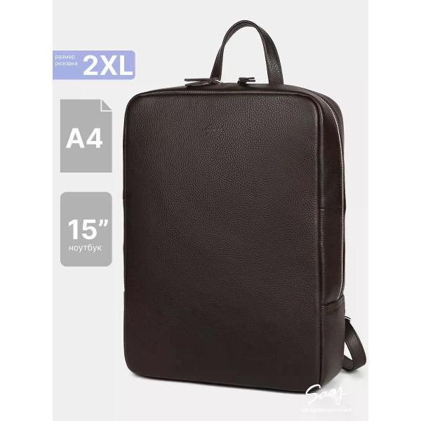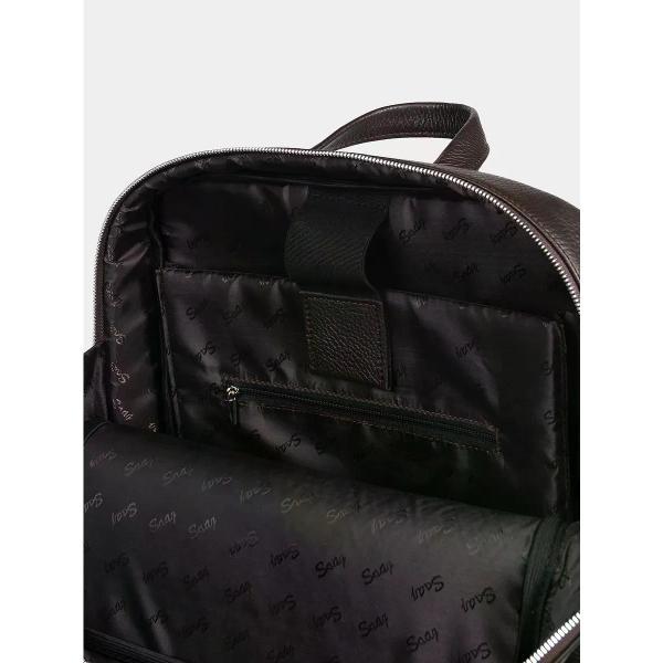 Городской рюкзак бренда SAAJ для ноутбука 15 дюймов из натуральной кожи коричневого цвета. Рюкзак закрывается на молнию. На задней стенке карман на молнии. Внутри отделение для ноутбука 15 дюймов и карман на молнии для документов. В основное отделение входит формат А4. Максимальный вес содержимого рассчитан до 3,5 кг. Плечевые регулируемые ремни рюкзака усилены. Максимальная длина плечевых ремней 82 см, минимальная длина 66 см. Также имеется короткая ручка. Изделие упаковано в тканевый мешок.