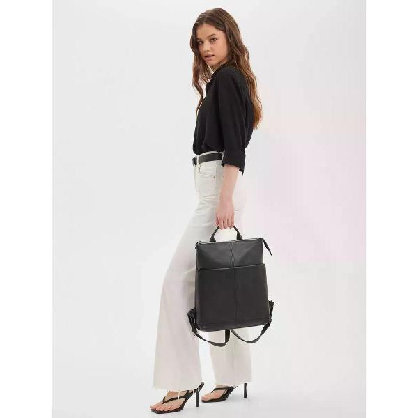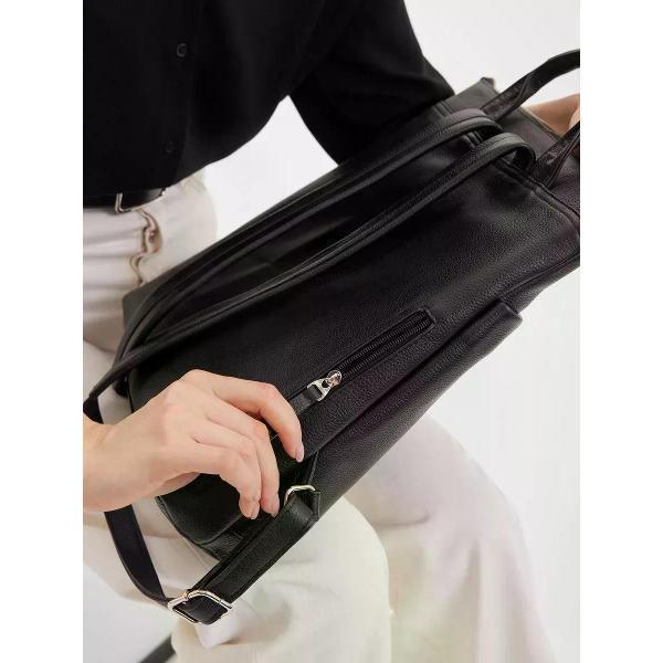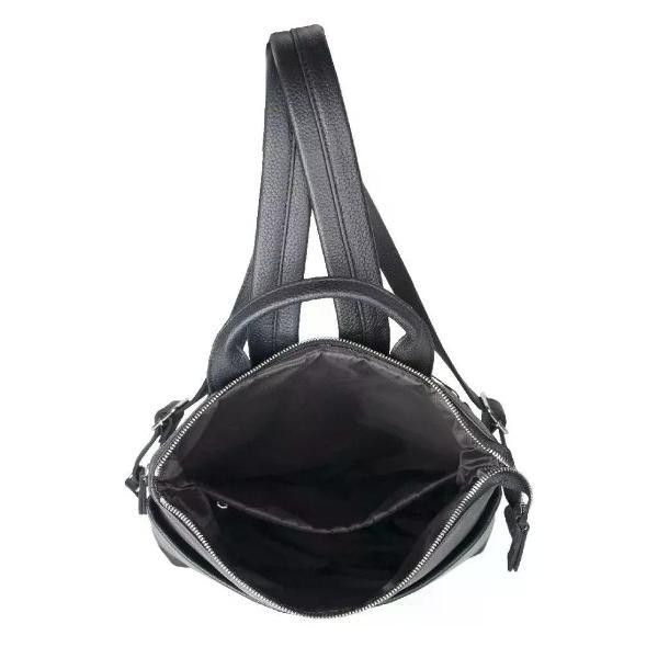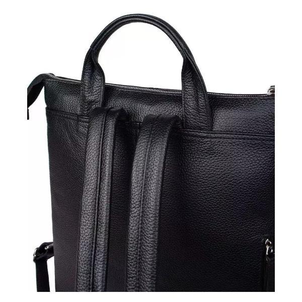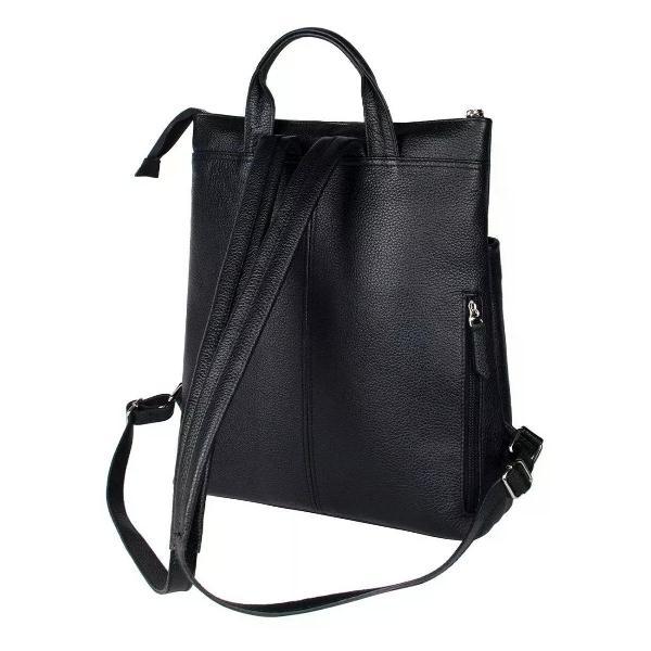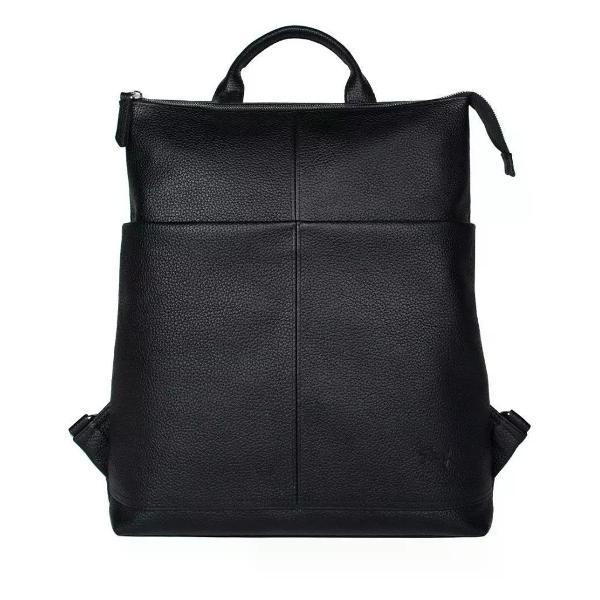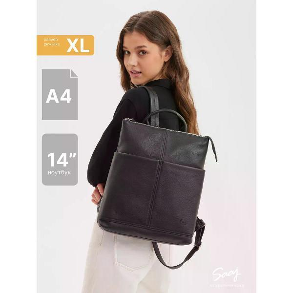 Городской рюкзак бренда SAAJ для ноутбука 14 дюймов из натуральной кожи черного цвета. Рюкзак закрывается на молнию. На передней стенке два открытых кармана. На задней стенке сбоку карман на молнии. Внутри два кармана: карман на молнии и открытый карман. В основное отделение входит ноутбук 14" и формат А4. Плечевые регулируемые ремни усилены. Также имеется короткая ручка. Максимальная длина плечевых ремней 83 см, минимальная длина 66 см. Максимальный вес содержимого рассчитан до 3,5 кг. Изделие упаковано в тканевый мешок.