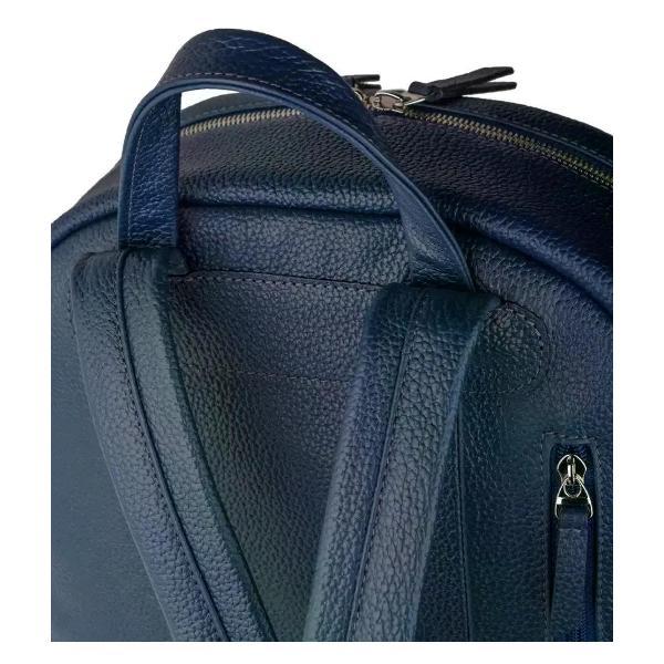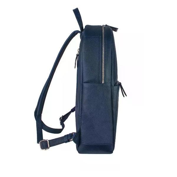 Городской рюкзак бренда SAAJ для ноутбука 14 дюймов из натуральной кожи синего цвета. Закрывается на молнию. Фирменная шелковистая подкладка с нанесением логотипа. Внутри основного отделения отделение для ноутбука 14 дюймов (32,3*21,5 см) и формата А4, карман на молнии и один открытый карман для мелочи. На лицевой стороне накладной карман на молнии. На задней стенке карман на молнии. Максимальная длина плечевых ремней 81 см, минимальная длина 65 см. Изделие упаковано в тканевый мешок.