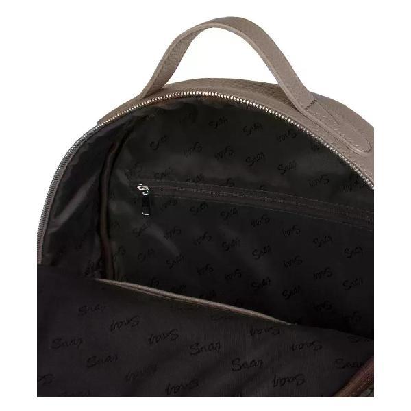 Городской рюкзак бренда SAAJ для ноутбука 13 дюймов из натуральной кожи цвета тауп. Рюкзак закрывается на молнию. На передней и задней стенках карманы на молнии. В рюкзаке одно отделение, где можно поместить ноутбук 13" и формат А4. Внутри карман на молнии для документов и открытый карман для мелочи. Максимальный вес содержимого рассчитан до 3,5 кг. Плечевые регулируемые ремни рюкзака усилены. Верхнее расстояние между плечевыми ремнями 6 см. Максимальная длина плечевых ремней 75 см, минимальная длина 66 см. Изделие упаковано в тканевый мешок.