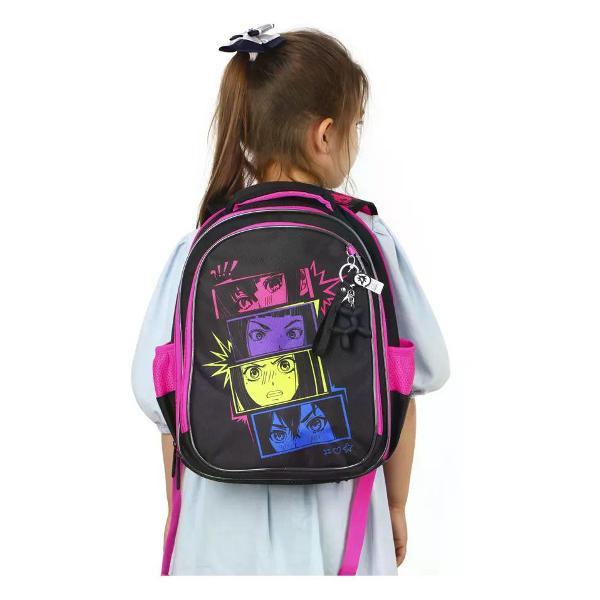 Ранец школьный для девочки спинка эргономичная, 2 отделения, 38*27*16 см, COMFORT Light, Anime Style, Brigfut, 213794. размер: 38*27*16 см; особенности: разделители; материал: полиэстер; комплектация: с брелоком; количество отделений: 2 отделения; количество карманов: 4 внешних, 1 внутренний; отделка: ; пол: для девочек; каркас: формоустойчивый; тип спинки: спинка эргономичная; вес: 930 г; светоотражающие элементы: да; застежка лямок на груди: да; органайзер: да; Торговая марка:: Brigfut; Страна:: Китай. Лёгкий, компактный и вместительный школьный ранец серии Comfort light, размером 27*38*16 см. Ранец рассчитан на рост от 128 до 170 см. Выполнен из высококачественного, износостойкого и влагоотталкивающего материала. Модель имеет эргономичную вентилируемую спинку, регулируемые лямки, нагрудную застёжку. Ранец состоит из двух отделений на молнии. В основном отделении предусмотрены разделители для учебных пособий, карман для пропуска. Модель имеет четыре внешних кармана: один большой на молнии, который включает в себя органайзер для письменных принадлежностей, два боковых кармана на резинке и потайной карман на спинке. Дно выполнено из водонепроницаемого материала и оснащено прорезиненными ножками для устойчивости. Световозвращающие вставки на лямках, передней и боковых частях ранца обеспечивают безопасность ребёнка в тёмное время суток. Отделка: термопечать. Вес ранца 930 г.