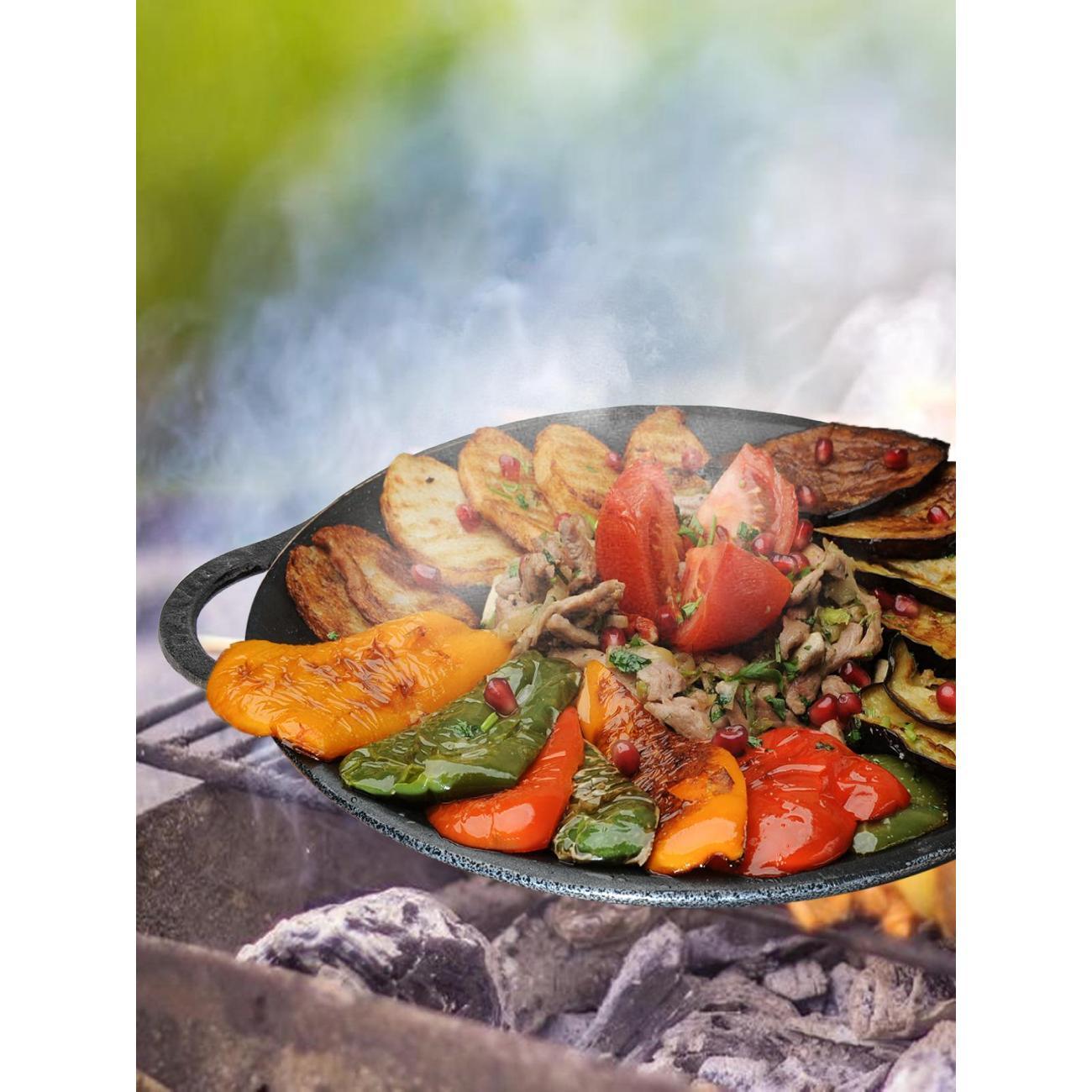 Представляю вашему вниманию уникальный продукт - чугунную сковороду садж, диаметром 35 см, которая станет незаменимым помощником на вашей кухне и на природе. Это восточный гриль, который позволит вам приготовить самые вкусные блюда в узбекском стиле.