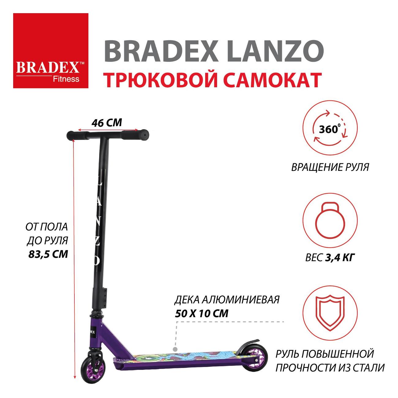 Вы можете купить Самокат Bradex LANZO SF 0838 в магазинах М.Видео по доступной цене. Самокат Bradex LANZO SF 0838: подробное описание, фото и отзывы реальных покупателей, характеристики, возможность скачать инструкции и подобрать аксессуары.