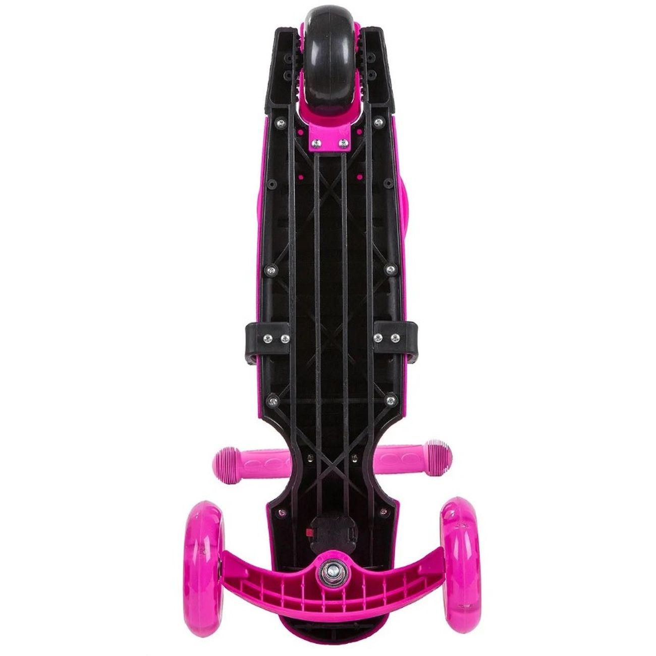Максимальная нагрузка не должна превышать 25 кг. Модель отличается нескладной конструкцией. Дека выполнена из пластика с противоскользящим покрытием. Предназначен для детей от 3 лет. Тип тормоза — ножной.