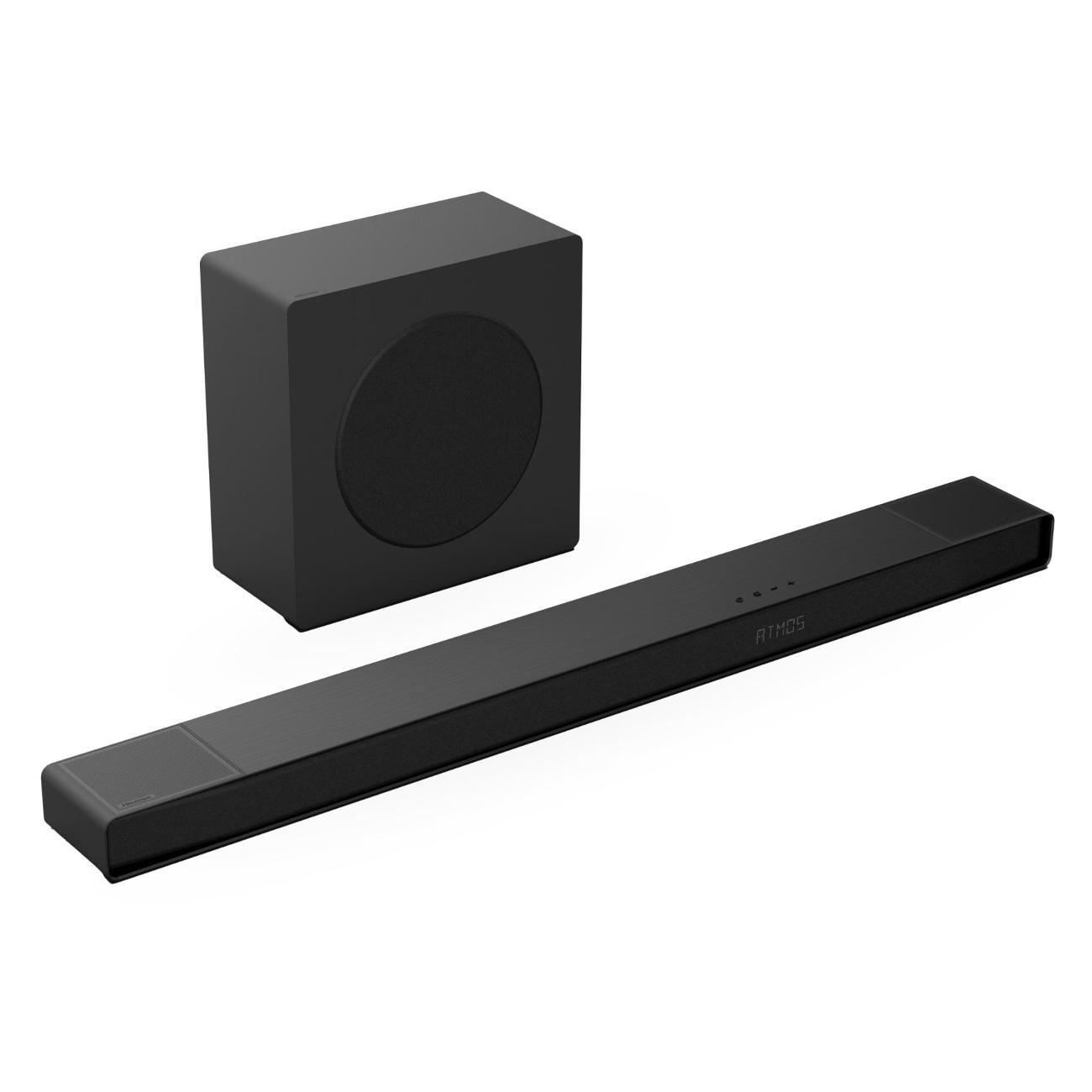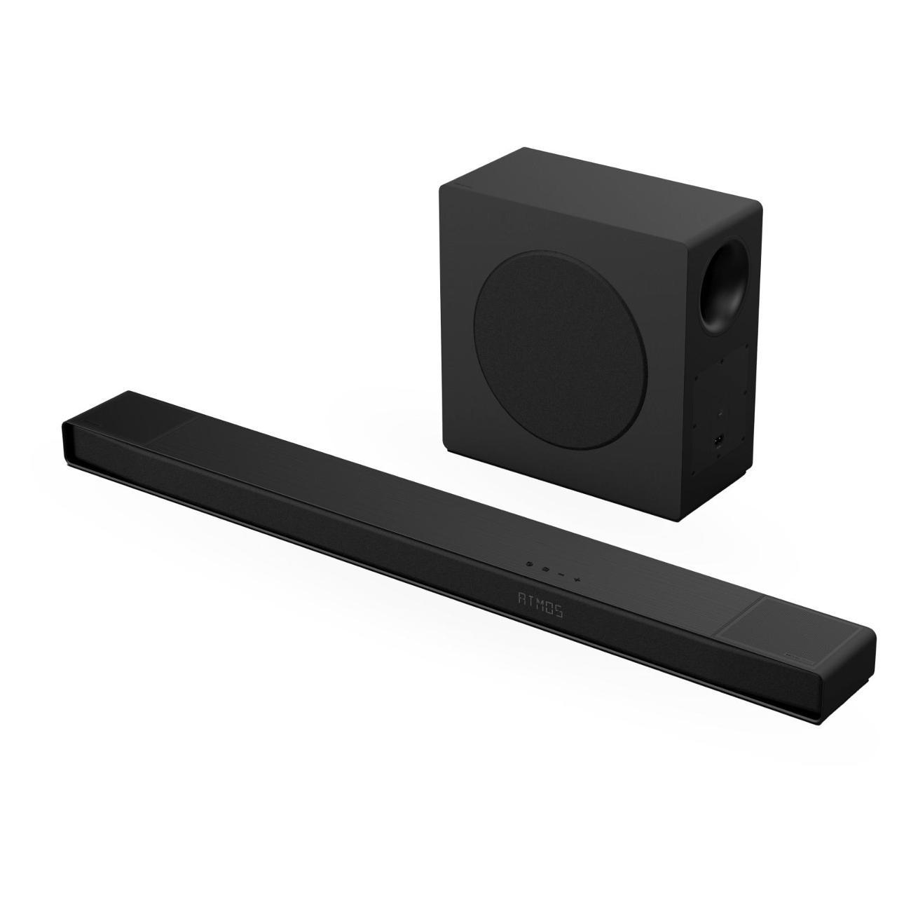 Саундбар Hisense AX3120Q состоит из звуковой панели размером 1020х59х108 мм и сабвуфера, которые автоматически сопрягаются по беспроводной связи Bluetooth 5.3. Система воспроизводит объемный звук мощностью 440 Вт, поддерживая атмосферу домашнего кинотеатра без лишних проводов.