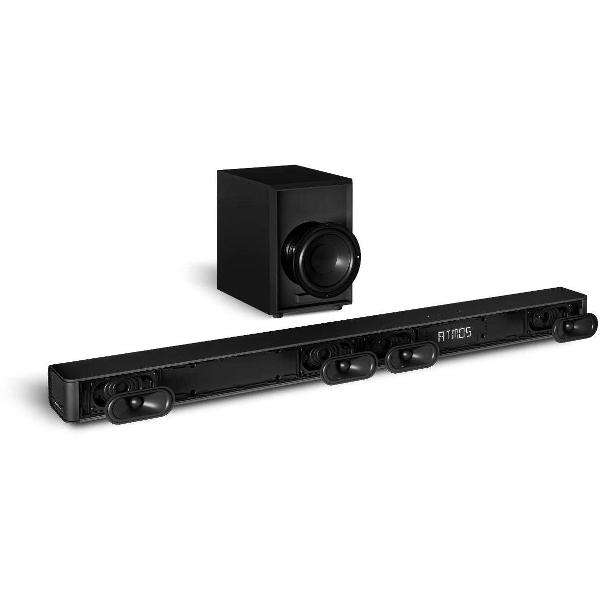 Система состоит из основного блока, тыловых колонок и беспроводного 6,5-дюймового сабвуфера мощностью 120 Вт, который подключается по Bluetooth 5.3. Интегрировано семь динамиков. Встроены разъемы HDMI, порт USB 2.0 Type A, оптический вход (Toslink), коаксиальный цифровой вход и выход, 3,5-миллиметровый разъем AUX. Для управления системой можно использовать смартфон.