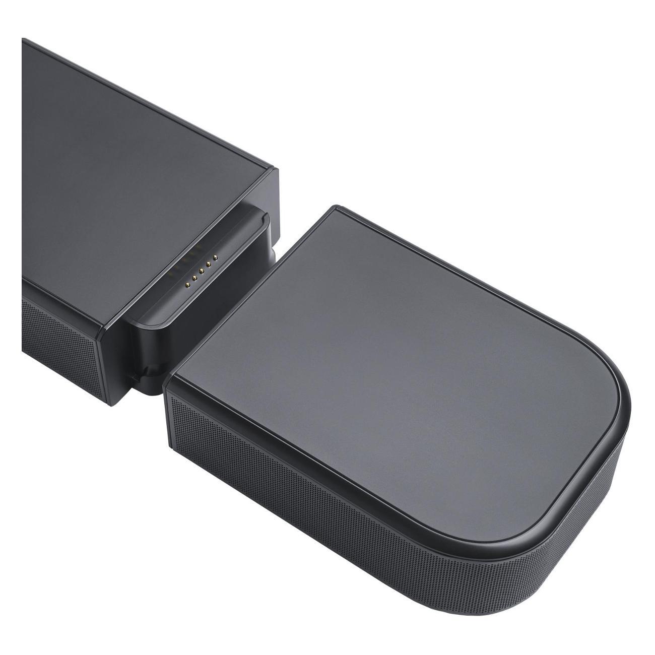Отсоединяемые тыловые динамики работают от аккумуляторов, что избавляет от необходимости тянуть провода через всю комнату. Достаточно снять их с основного блока и поставить позади себя, чтобы получить реалистичное окружающее звучание, как в кинозале.