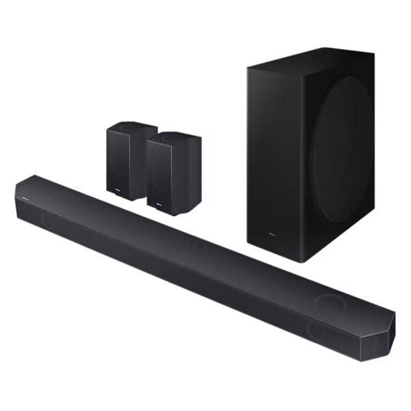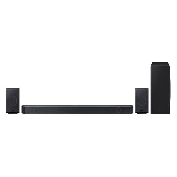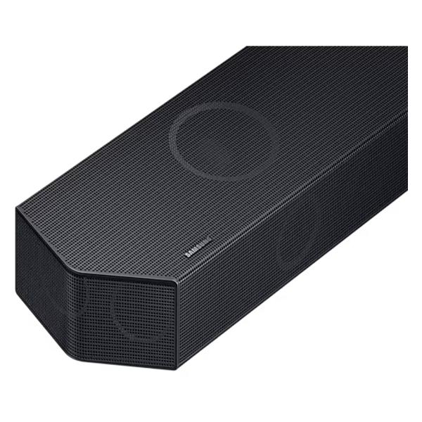 Саундбар Samsung HW-Q990B, черный, транслирует объемный, выразительный и детализированный звук, который впечатлит и киноманов, и меломанов, и геймеров. Его формируют 11 фронтальных и окружающих каналов, один канал сабвуфера и четыре канала, динамики которых «смотрят» вверх, таким образом система 11.1.4-канальная, общее число динамиков — 22. Формат Dolby Atmos передается на устройство беспроводным способом.