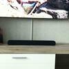 Саундбаром можно управлять в дистанционном режиме: с помощью пульта или смартфона. Корпус устройства сделан из пластика с текстильной отделкой. На нем расположены порты HDMI и оптический вход Toslink. В комплекте с саундбаром поставляются цифровой HDMI-кабель, крепления для настенного монтажа и кабель электропитания 220 В.