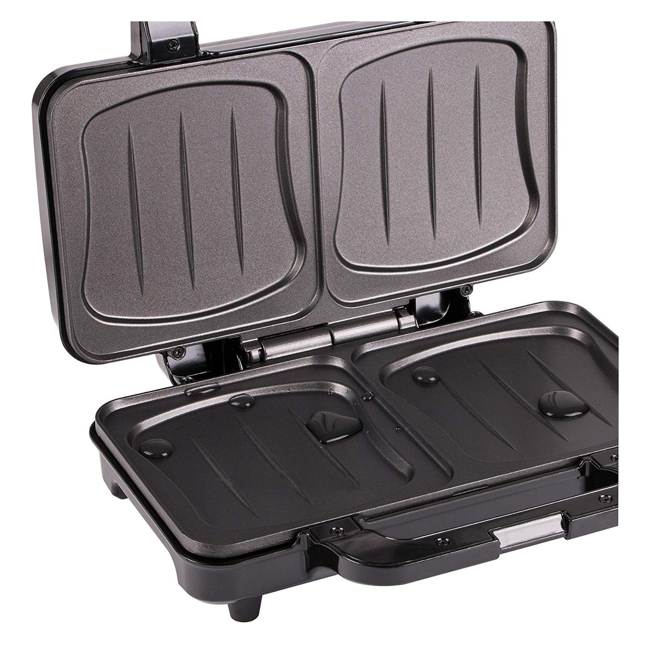 Красота! Готовить горячие бутерброды теперь одно удовольствие. Плюс этой модели для меня в том, что она не в форме треугольников, а именно полноценные куски хлеба можно класть и делать нормальный добротный сэндвич. Пластины покрыты антипригарным покрытием, мыть просто, доставать из форм готовый бутерброд легко. Запекает хорошо. О разогреве сигнализируют лампочки.