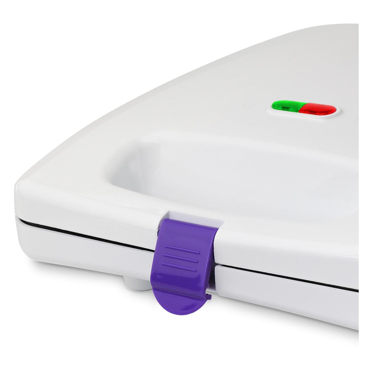 Рабочая поверхность снабжена антипригарным покрытием, не требует смазывания маслом и легко очищается. Корпус выполнен из пластика, снабжен фиксатором крышки. Он обеспечивает не только более эффективное удержание тепла, но и компактное хранение. Длина сетевого шнура — 0,8 м, для его намотки предусмотрено крепление. Размеры сэндвичницы: 265х315х115 мм, вес — 2,5 кг.