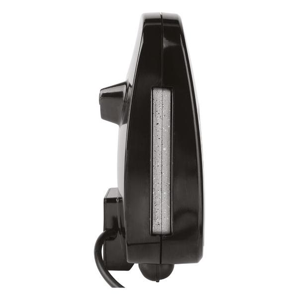 Панели снабжены антипригарным покрытием — тесто не прилипает, очистка не доставляет хлопот. Мыть рабочие поверхности рекомендуется вручную. Мощность прибора — 800 Вт, длина сетевого шнура — 0,8 м. Термоизолированная ручка оснащена защелкой, которая способствует плотному смыканию панелей и удержанию тепла во время приготовления. Она удобна и для компактного вертикального хранения устройства.